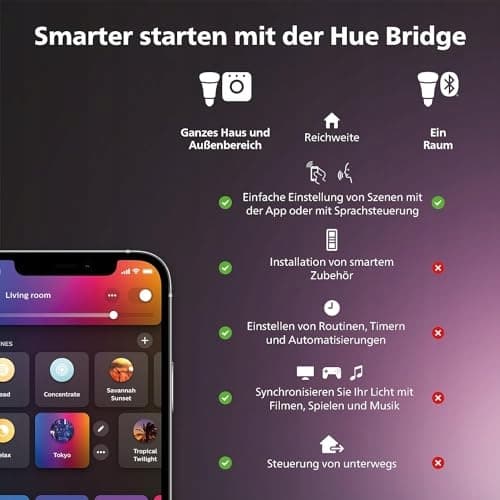 Inteligentne rozszerzenie: Oddzielnie dostępna centrala sterująca Hue Bridge może sterować lampami E27 razem z innymi lampami lub akcesoriami, automatyzować je i obsługiwać z dowolnego miejsca na świecie