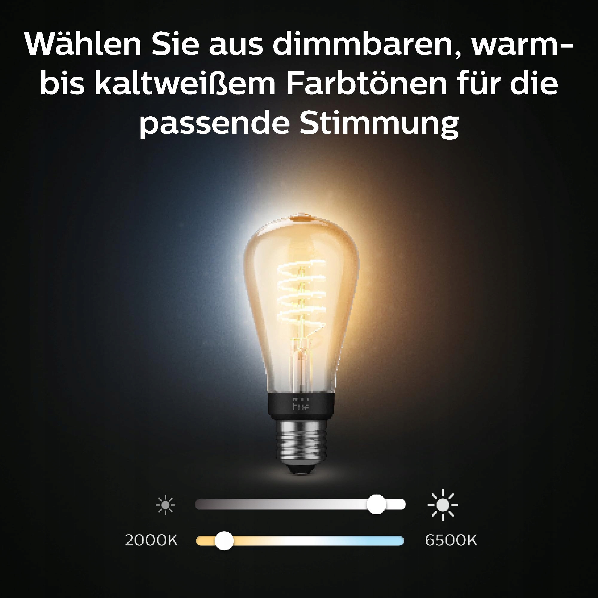 PHILIPS Hue White E27 Filament ST64 550lm, ciepłe białe światło, ściemnialne, sterowane przez aplikację, kompatybilne z Amazon Alexa (Echo, Echo Dot)