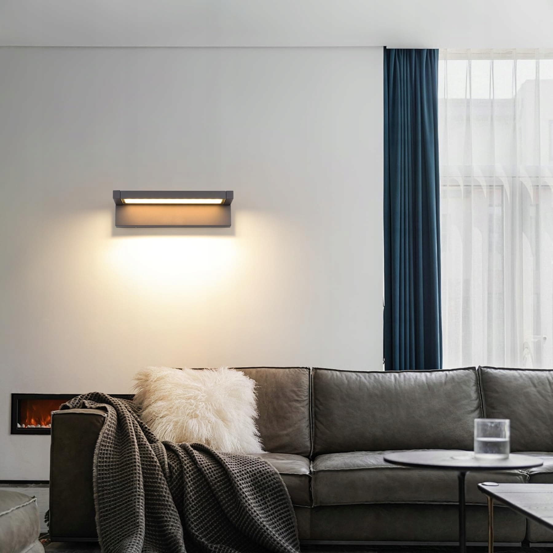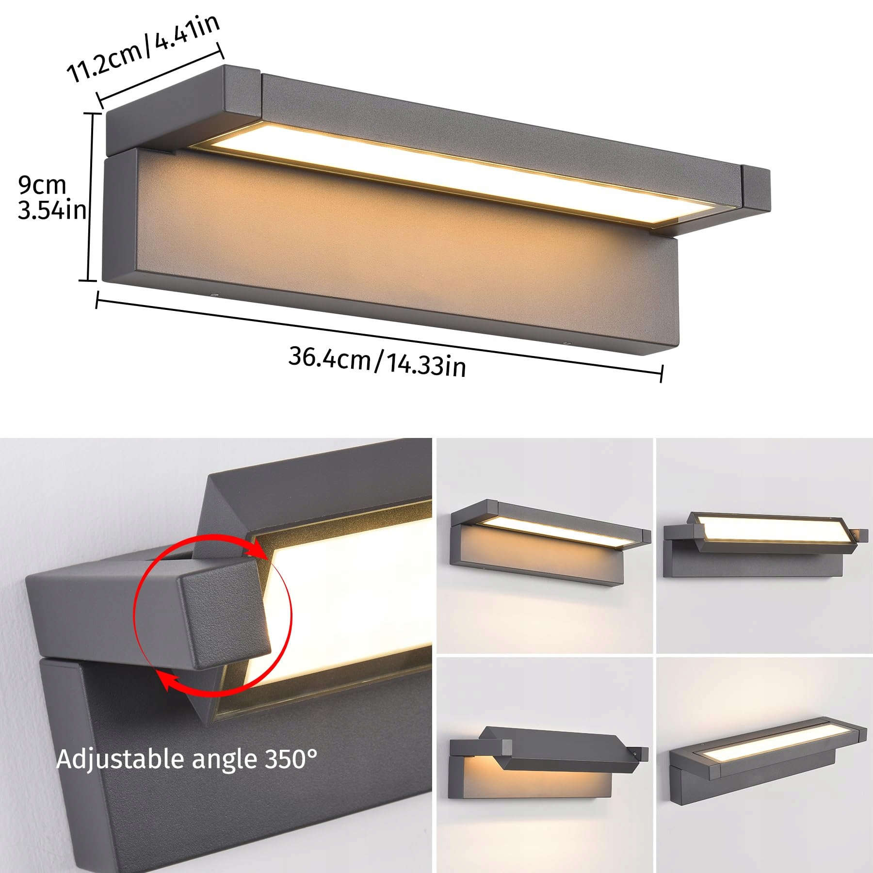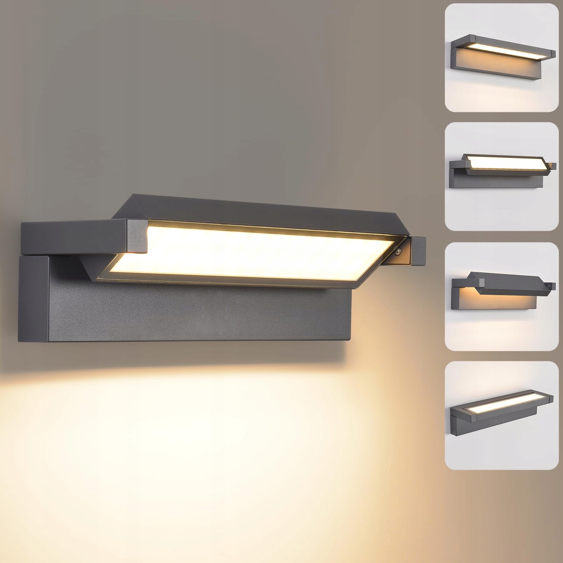 Lampa zewnętrzna 36W LED, kinkiet zewnętrzny, lampa ścienna, wodoodporna lampa zewnętrzna IP65 3000K ciepła biel, lampa ścienna na zewnątrz i do wnętrz z panelem obracanym o 350° do ogrodu, tarasu, balkonu, ciemnoszara
