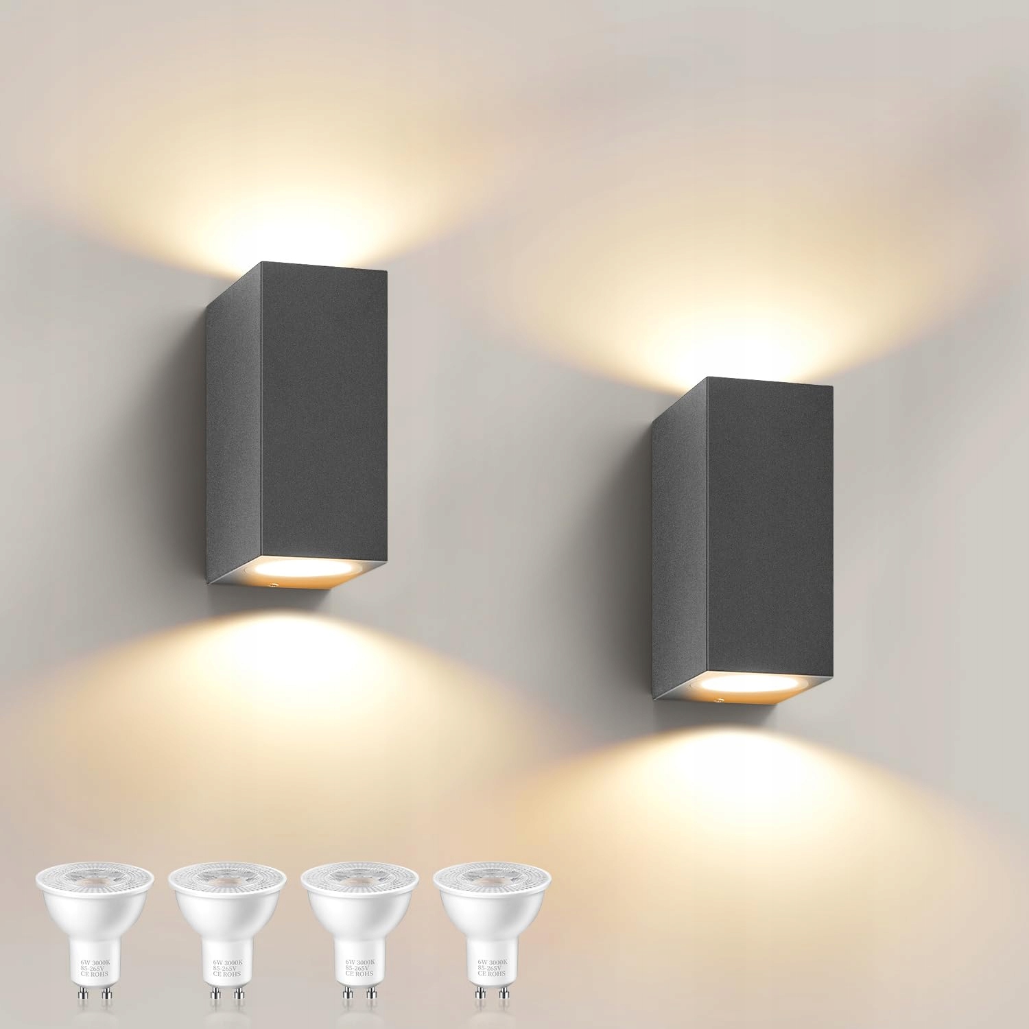 Idealny kinkiet z żarówkami GU10: Rozmiar kinkietu wewnętrznego to 15cm*8cm*6,3cm. 1 zestaw zawiera 2 kinkiety zewnętrzne, dostarczane z wysokiej jakości żarówkami GU10
