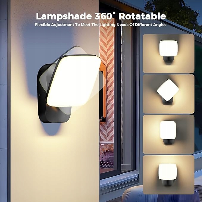NOWOCZESNY DESIGN - Ten kinkiet zewnętrzny i wewnętrzny posiada bardzo duży panel LED, a poziomy obrót o 360° umożliwia oświetlenie w każdym kierunku. Duży klosz z mlecznobiałego ABS o wymiarach 13 x 13 x 13 cm znacznie powiększa powierzchnię oświetlenia, a jednocześnie cechuje się wyrafinowanym i prostym wyglądem, który doskonale nadaje się do dekoracji i oświetlenia pomieszczeń mieszkalnych.