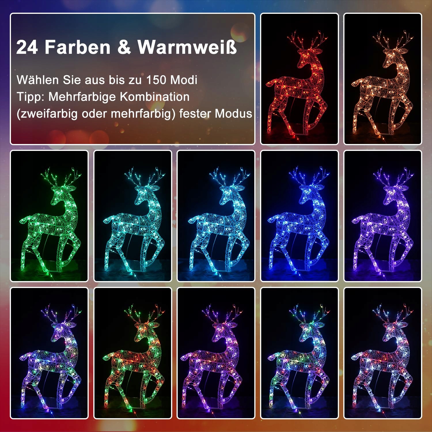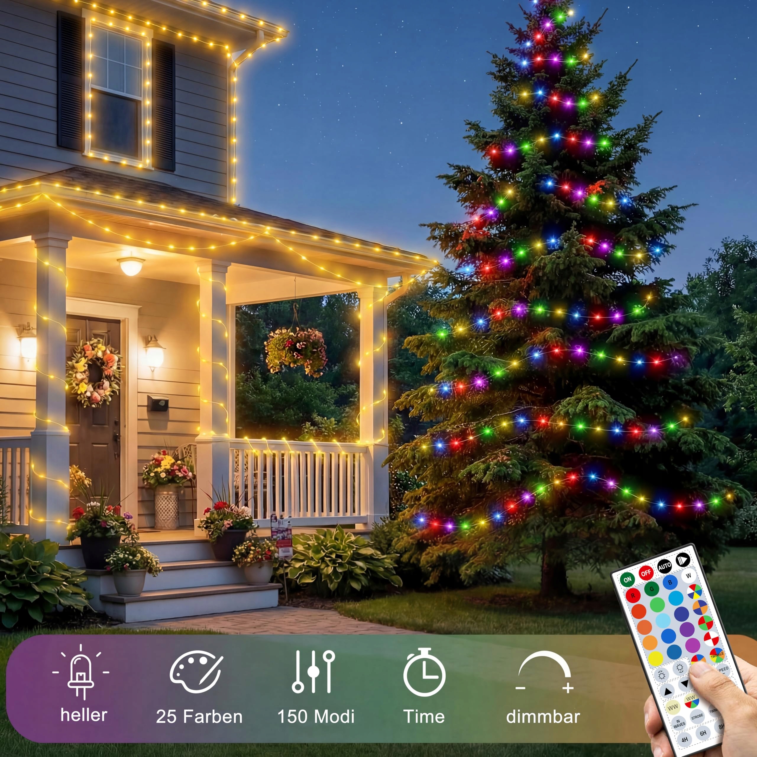 Opcje wielokolorowe i wielomodalne: Nasz kolorowy łańcuch świetlny oferuje światło RGB i ciepłe białe efekty świetlne oraz różne świąteczne kolory i do 150 opcji trybów oświetlenia. Możesz przełączać się między ulubionymi kolorami i wzorami, aby tworzyć unikalne efekty świetlne dla swojej sceny i tworzyć idealną świąteczną atmosferę.