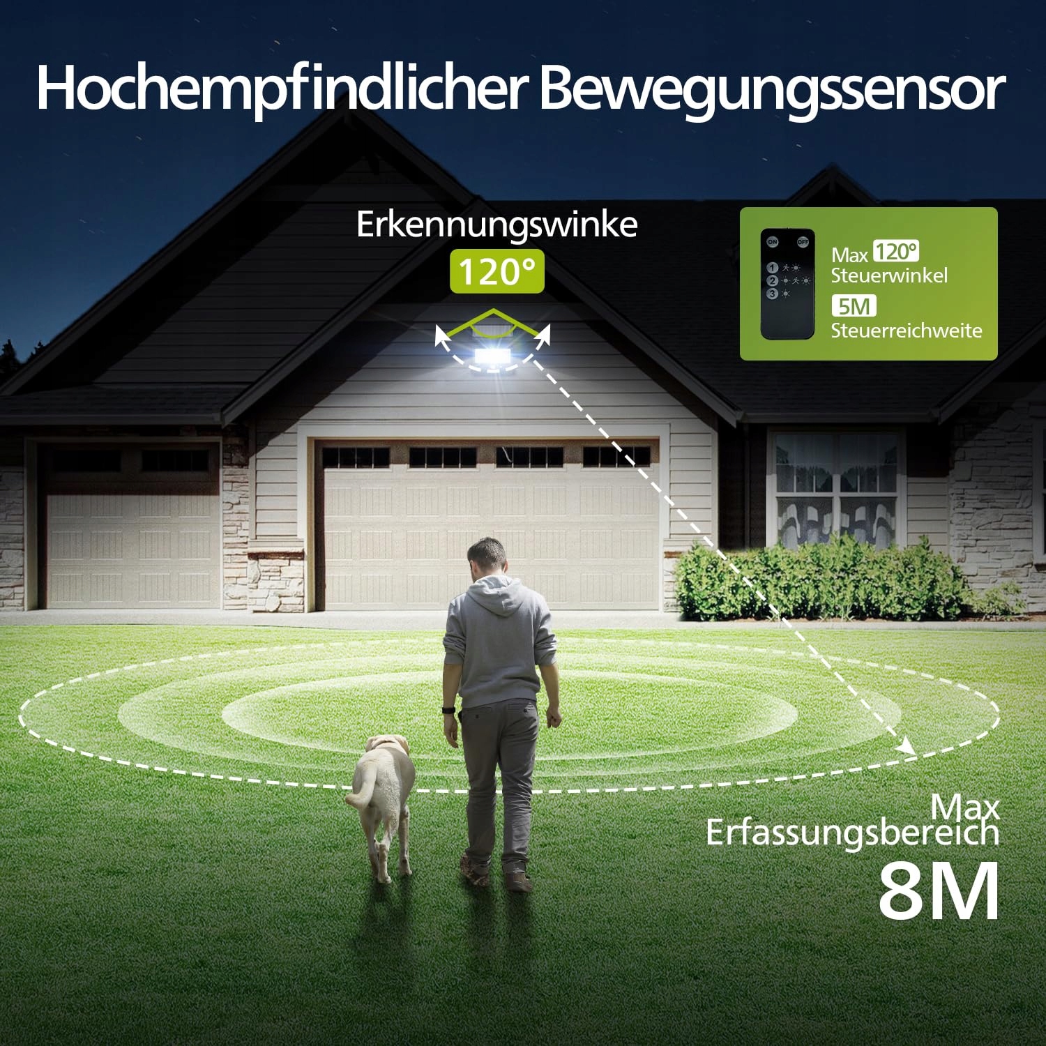 WYSOKA JASNOŚĆ I PILOT – Nasza solarna lampa reflektorowa wyposażona jest w wysoko świecące diody LED, które emitują chłodną temperaturę barwową światła dziennego 6500K i generują jasność 800 lumenów. Tryby świecenia można zmieniać za pomocą pilota – nie trzeba więc wspinać się, aby dostosować ustawienia lampy