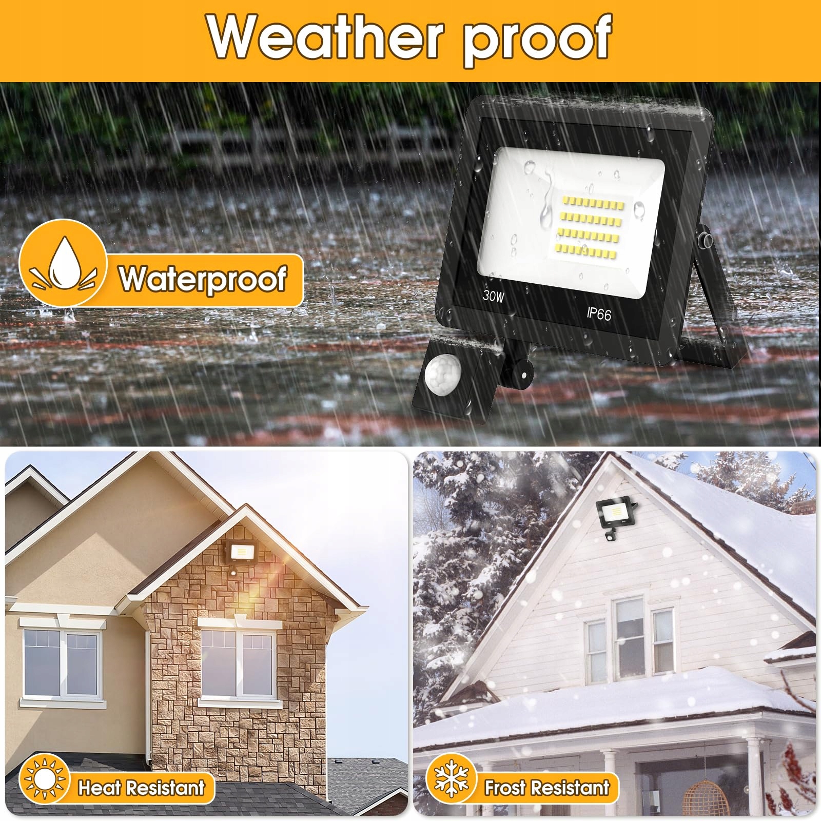 【Energooszczędna 30W LED o wysokiej jasności】Dzięki wysoce wydajnym diodom LED o mocy 30W ten reflektor zużywa znacznie mniej energii niż tradycyjne lampy halogenowe. Równomierne, jasne światło o temperaturze barwowej 6500K zimnej bieli idealnie nadaje się do oświetlenia dużych powierzchni na zewnątrz. Niezależnie od tego, czy oświetlasz ogród, garaż czy wejście do domu – ta lampa zapewnia nie tylko optymalne warunki widoczności, ale może także zmniejszyć zużycie energii nawet o 80%