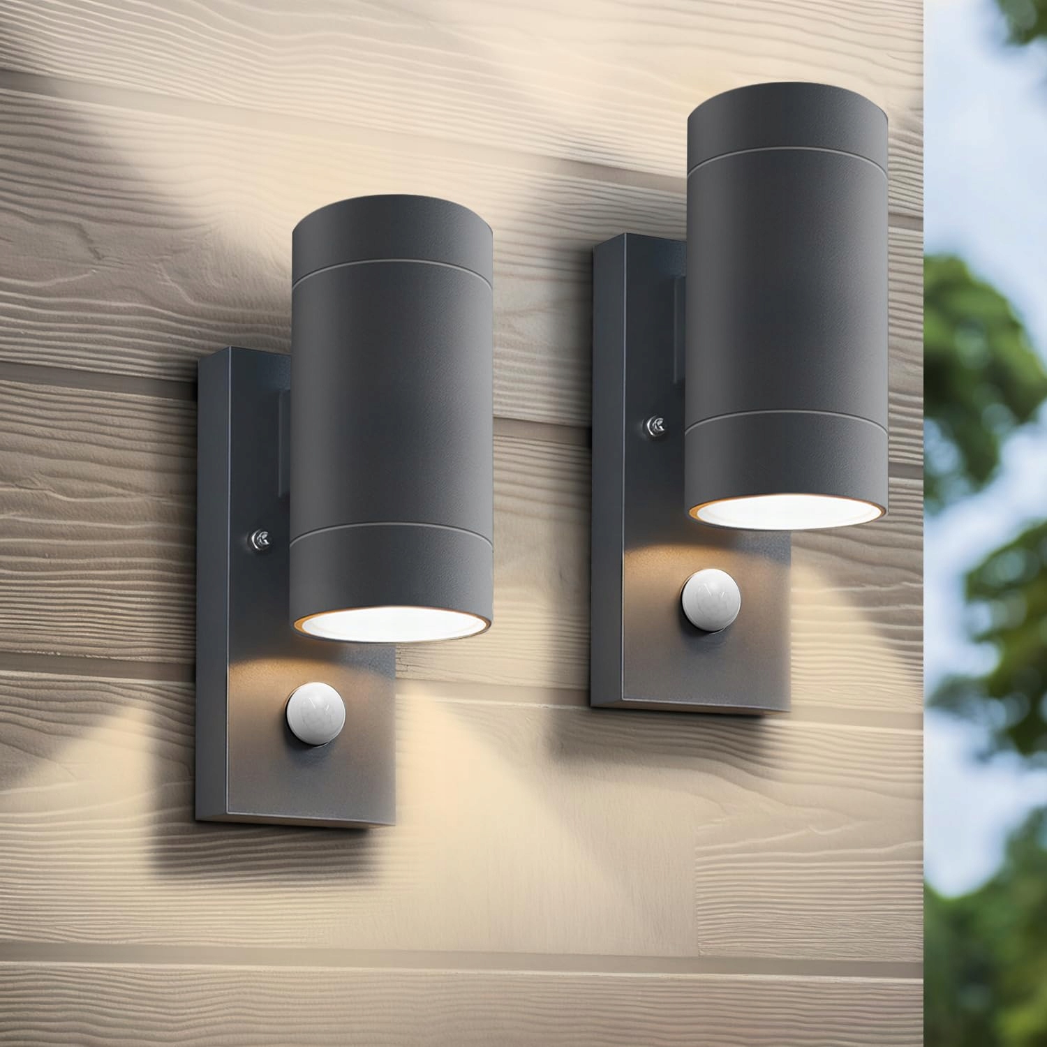 2 sztuki kinkietu z czujnikiem ruchu, IP65 wodoodporne lampy kinkiety zewnętrzne GU10, aluminiowa lampa zewnętrzna góra i dół, lampa ścienna na drzwi wejściowe, wejście, taras, antracyt
