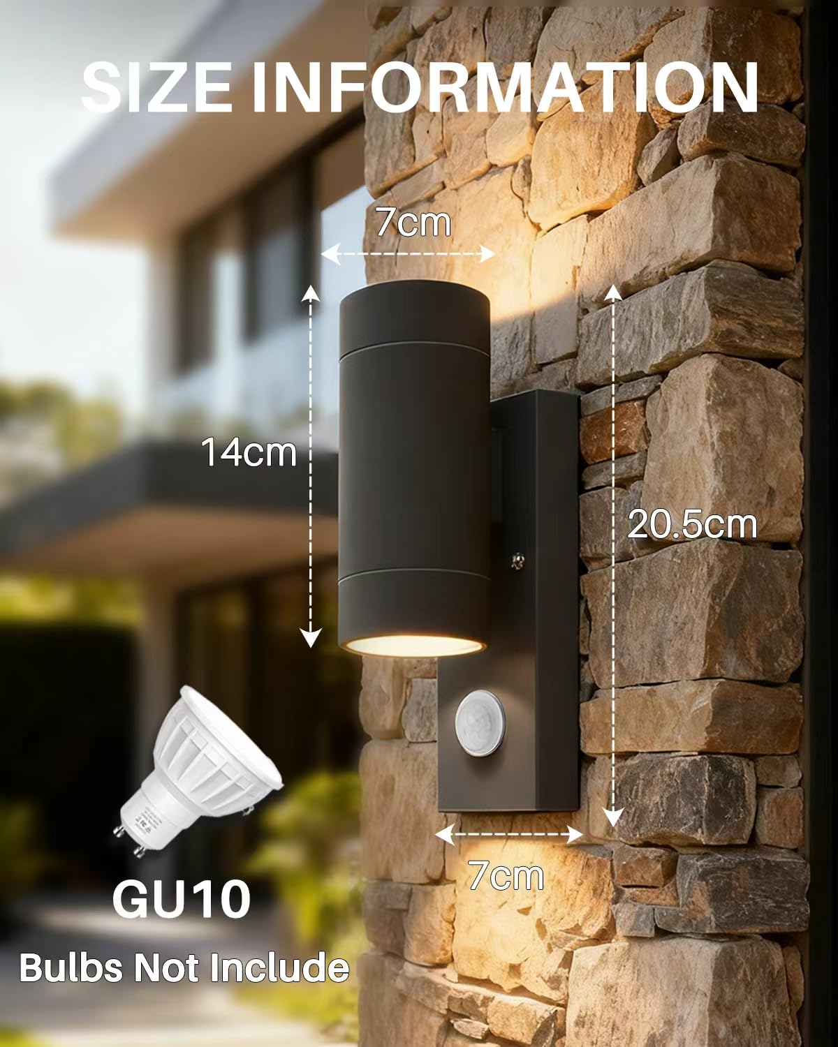 【Łatwa instalacja】Ta lampa zewnętrzna jest dostarczana z instrukcją montażu, dzięki czemu można ją zamontować w kilku prostych krokach bez skomplikowanych procedur. Oprawki lamp skierowane w górę i w dół są kompatybilne z żarówkami GU10. (Proszę zauważyć, że żarówki nie są dołączone.)