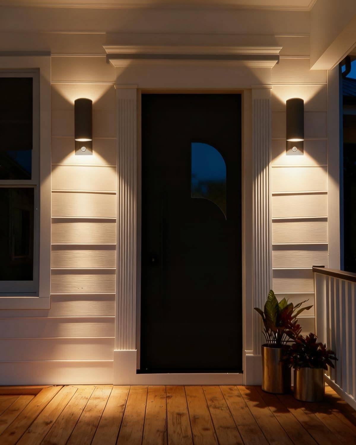 【Wszechstronne zastosowanie】Lampa zewnętrzna skierowana w górę i w dół nadaje Twojemu domowi elegancki i nowoczesny wygląd. Dwa źródła światła tworzą unikalny efekt świetlny na ścianach i zapewniają optymalne oświetlenie zewnętrzne. Nadaje się do drzwi wejściowych, werand, tarasów, balkonów, salonów, wejść, klatek schodowych i garaży.