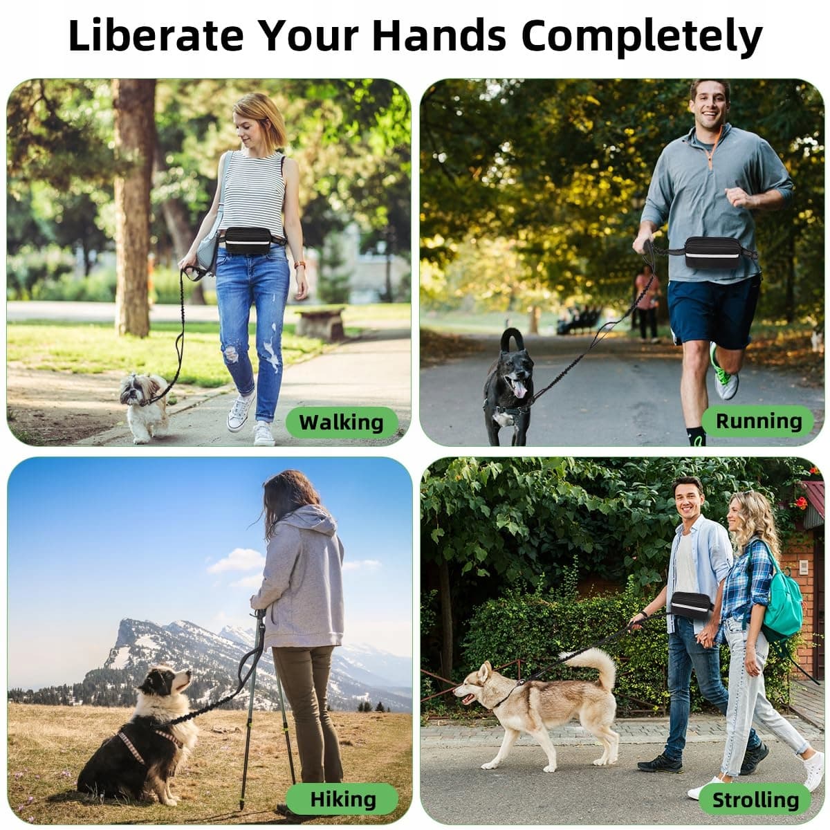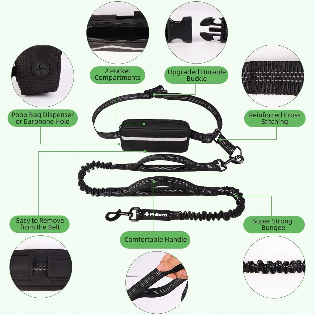 ✔[Komfort z odpinaną kieszenią na zamek] - Smycz do biegania z pasem biodrowym posiada odpinaną kieszeń na zamek. Możesz łatwo przechowywać akcesoria spacerowe, takie jak telefon, klucze, woreczki na odchody i przysmaki dla psa w kieszeni na biodrze i cieszyć się muzyką podczas biegania, wędrówek i spacerów.