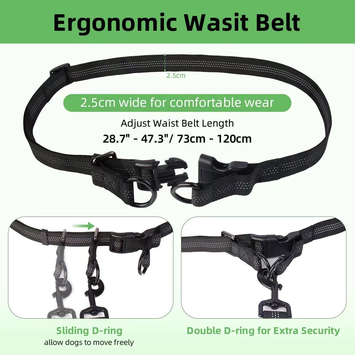 ✔[Regulowany pas biodrowy i odblaskowe szwy] - Długość pasa do biegania jest regulowana od minimum 73 cm do 120 cm i pasuje do większości rozmiarów bioder. Odblaskowe szwy na całej smyczy i kieszeni na biodrze zapewniają dodatkową widoczność nawet podczas nocnych spacerów, chroniąc Ciebie i Twojego psa.