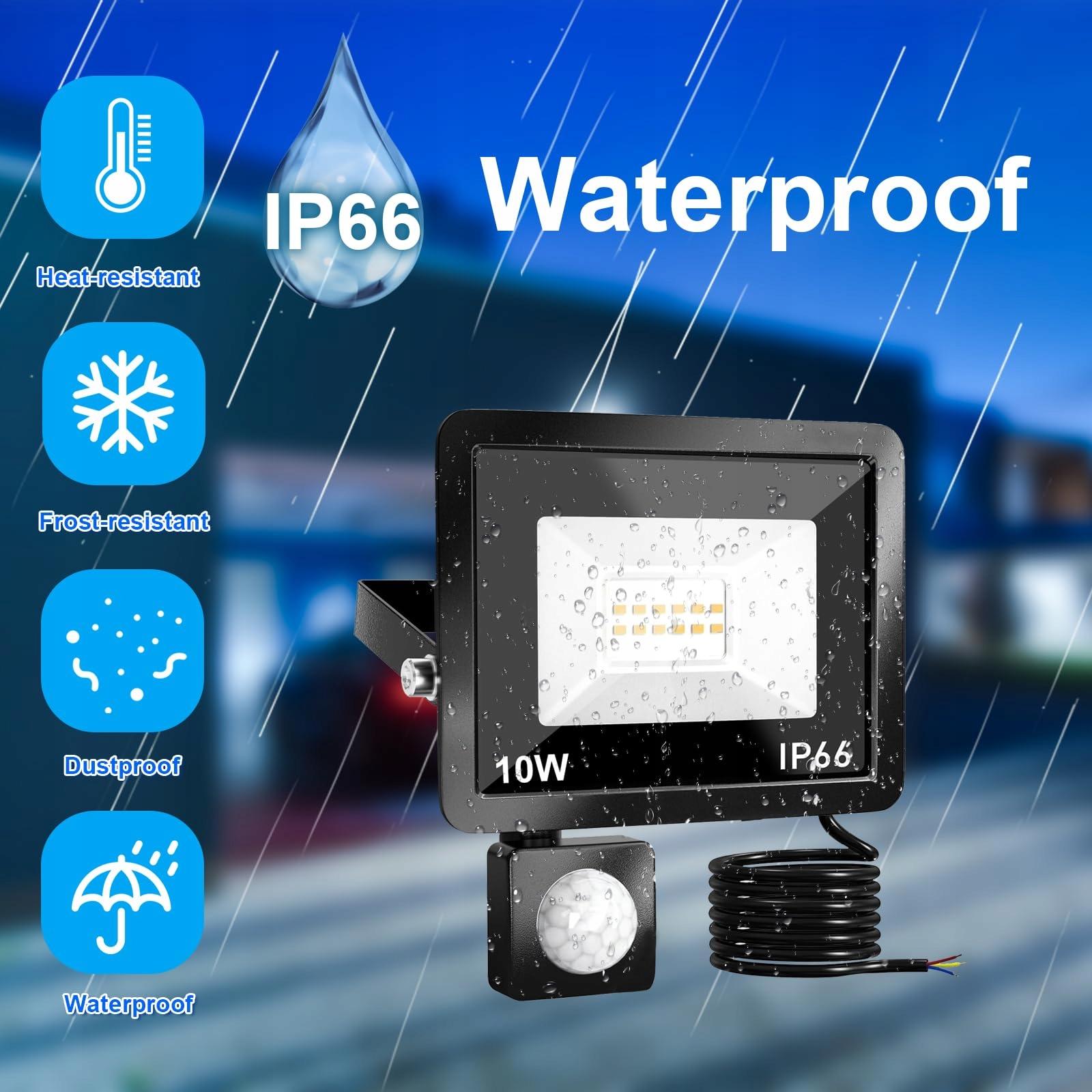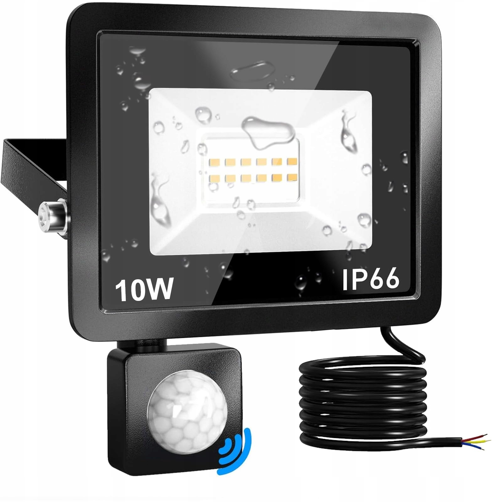 Phlbao LED reflektor z czujnikiem ruchu, 10W 1000LM, IP65 wodoodporny, 6500K zimna biel, lampa zewnętrzna do ogrodu, podwórek, garażu