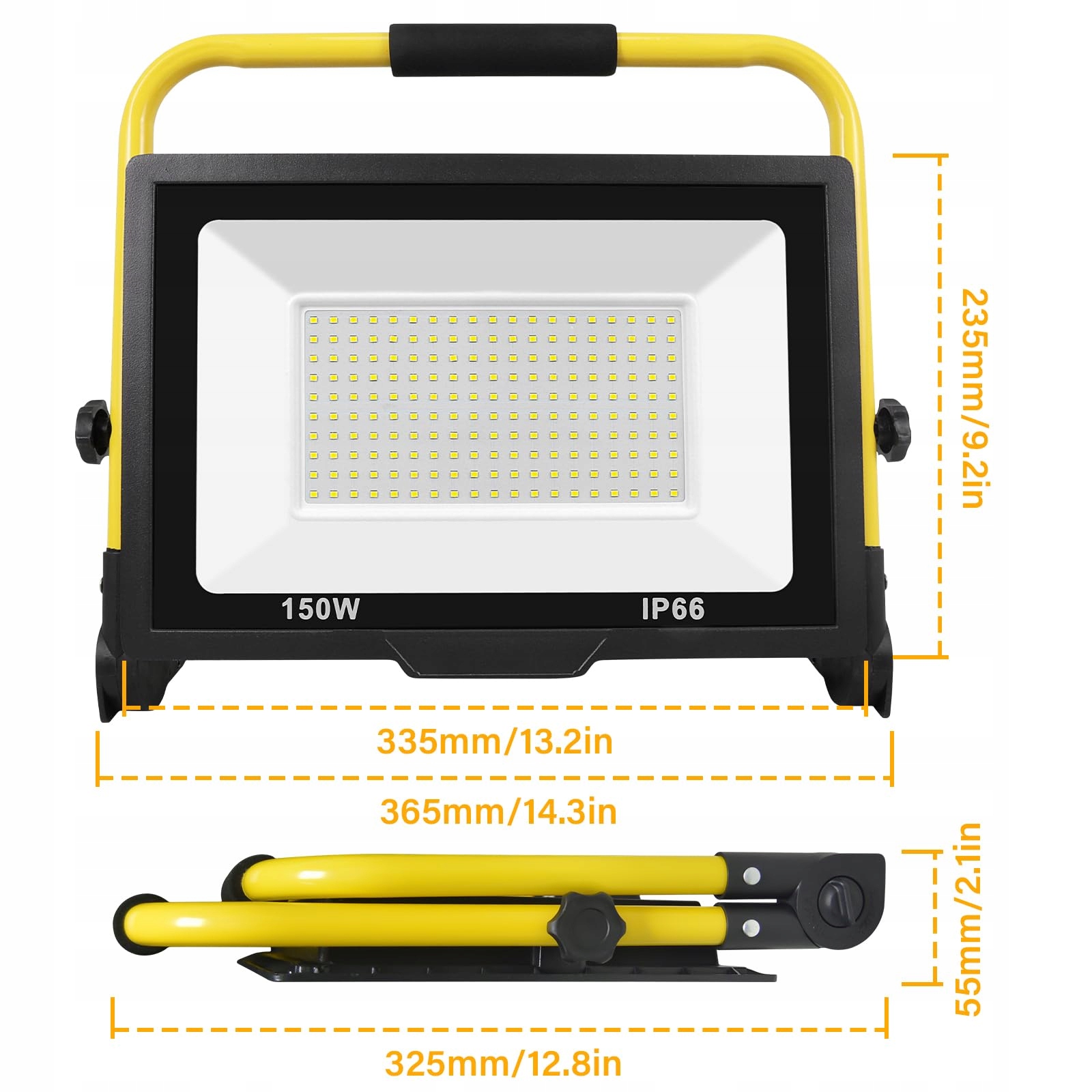 PICAA Reflektor budowlany, 150W LED floodlight 15000LM zimna biel przenośna lampa robocza LED IP66 wodoodporna lampa robocza reflektor do warsztatu plac budowy garaż 6500K