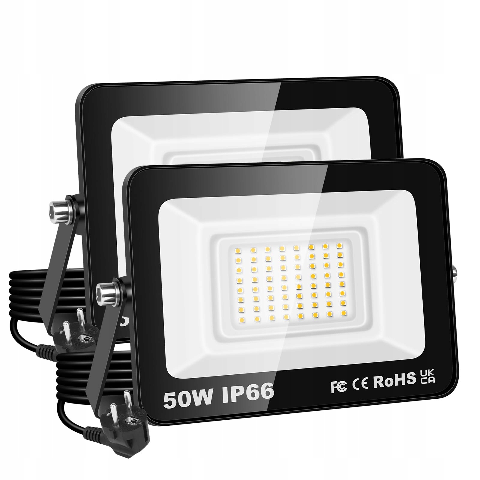 PICAA Led reflektor zewnętrzny, 50W LED naświetlacz, wodoodporny IP66, światło bezpieczeństwa 5000LM, ciepła biel 3000K lampa ścienna zewnętrzna do ogrodu, podwórka, garażu, tarasu, magazynu, z wtyczką EU (2 sztuki)