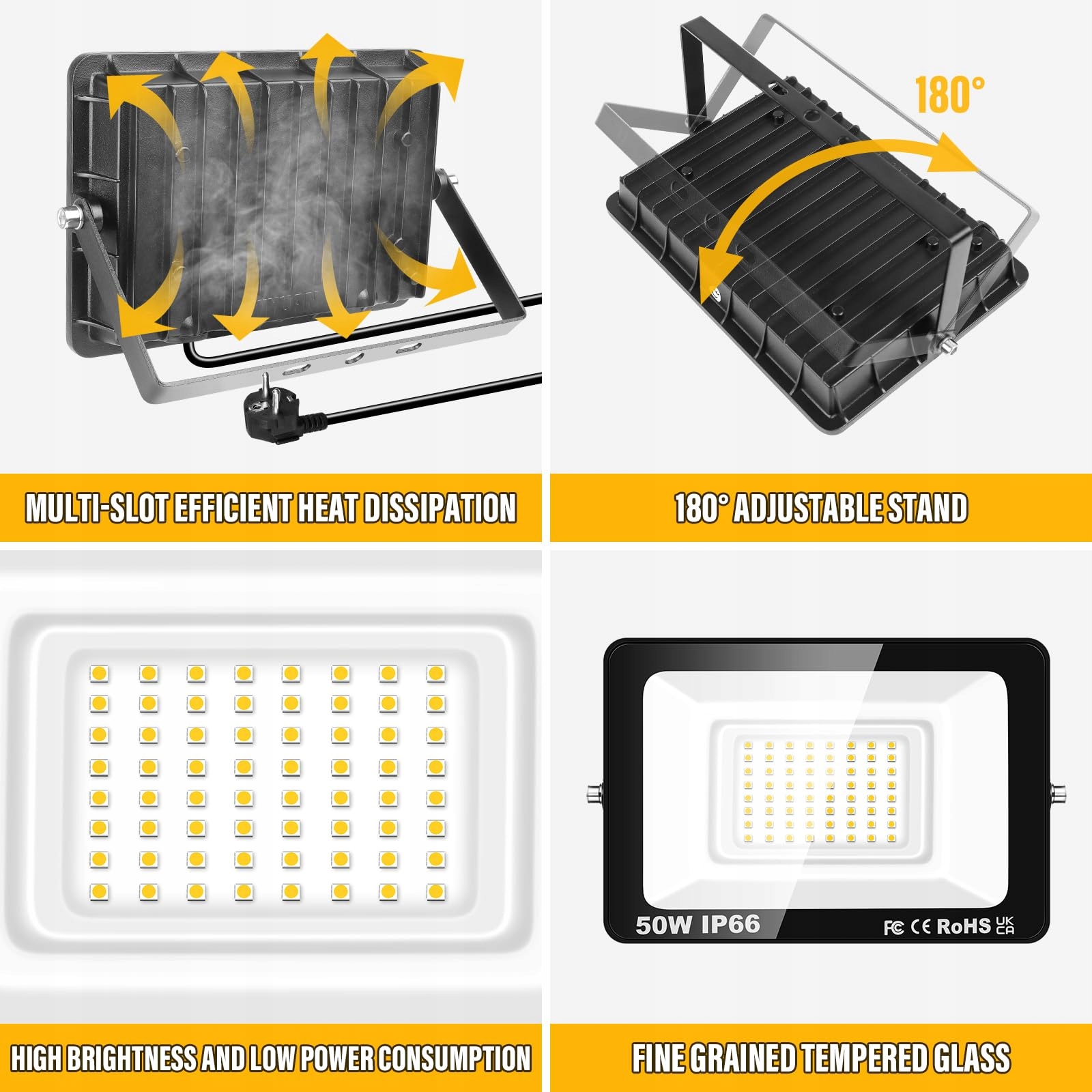 [Szeroki zakres zastosowań] - Uchwyt projektora jest składany, dzięki czemu można oszczędnie przechowywać światło i łatwo je przenosić. Reflektory LED mogą być używane w ogrodach, podwórkach, parkach, placach, fabrykach, na placach budowy oraz w innych miejscach wewnętrznych i zewnętrznych