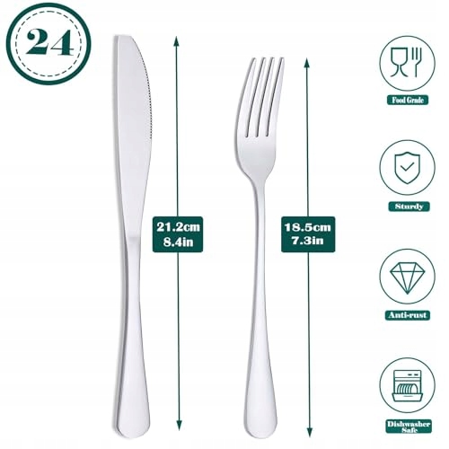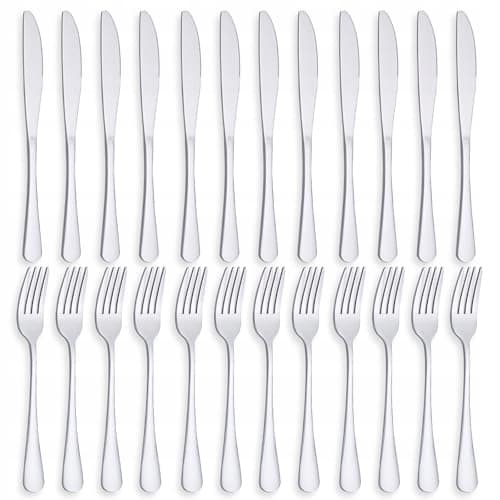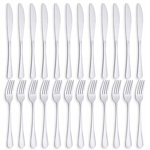 PionStar 24 sztuki zestawów noży i widelców, zestaw sztućców dla 12 osób, 12 widelców/12 noży stołowych, nadaje się do mycia w zmywarce, polerowane na wysoki połysk, zestaw sztućców z nożem i widelcem