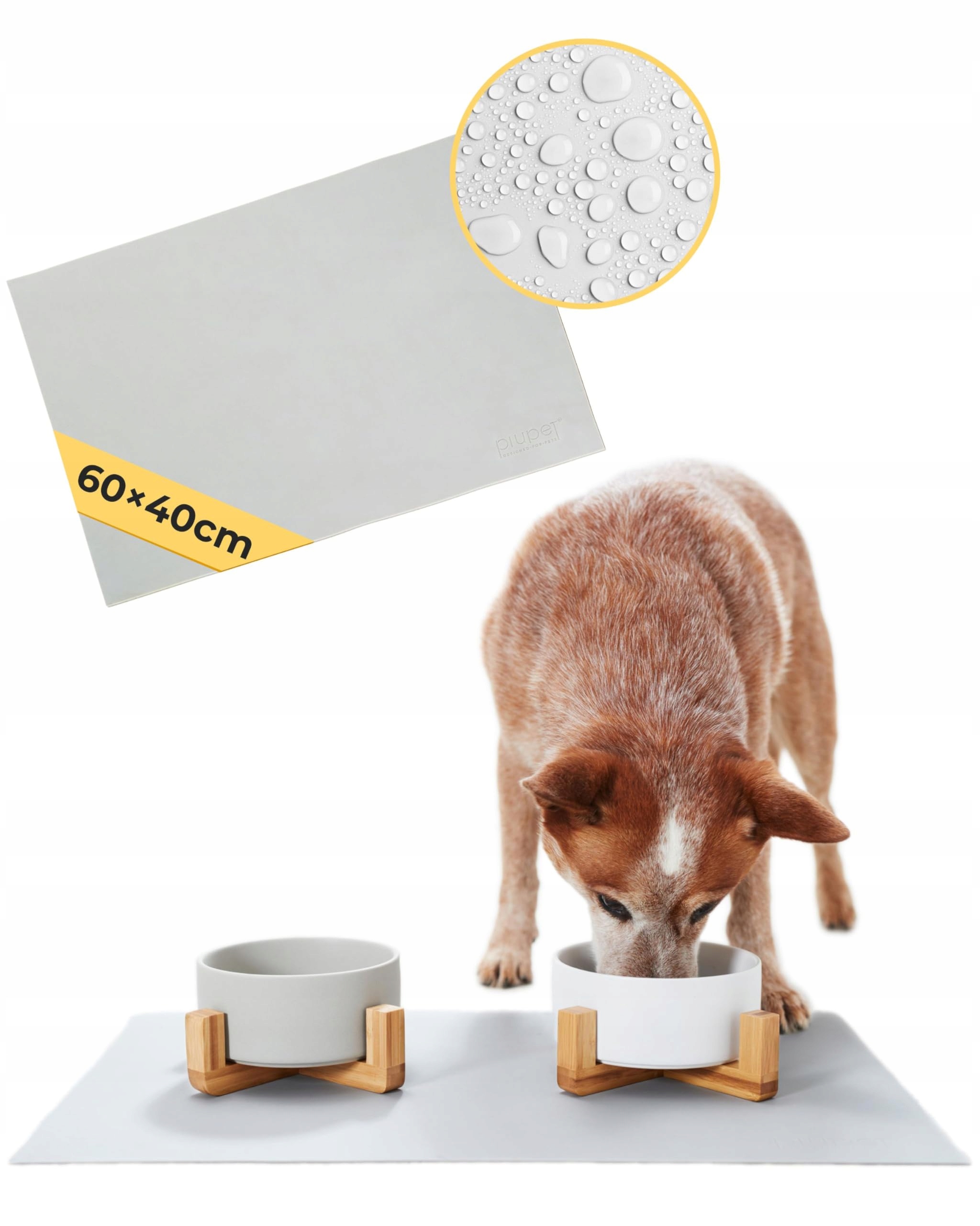 PiuPet® Mata pod miski dla kota i psa I 60x40cm I Wodoodporna I Silikonowa podkładka I Mata pod miski dla psa I Mata pod miski dla kota I Podkładka pod miski