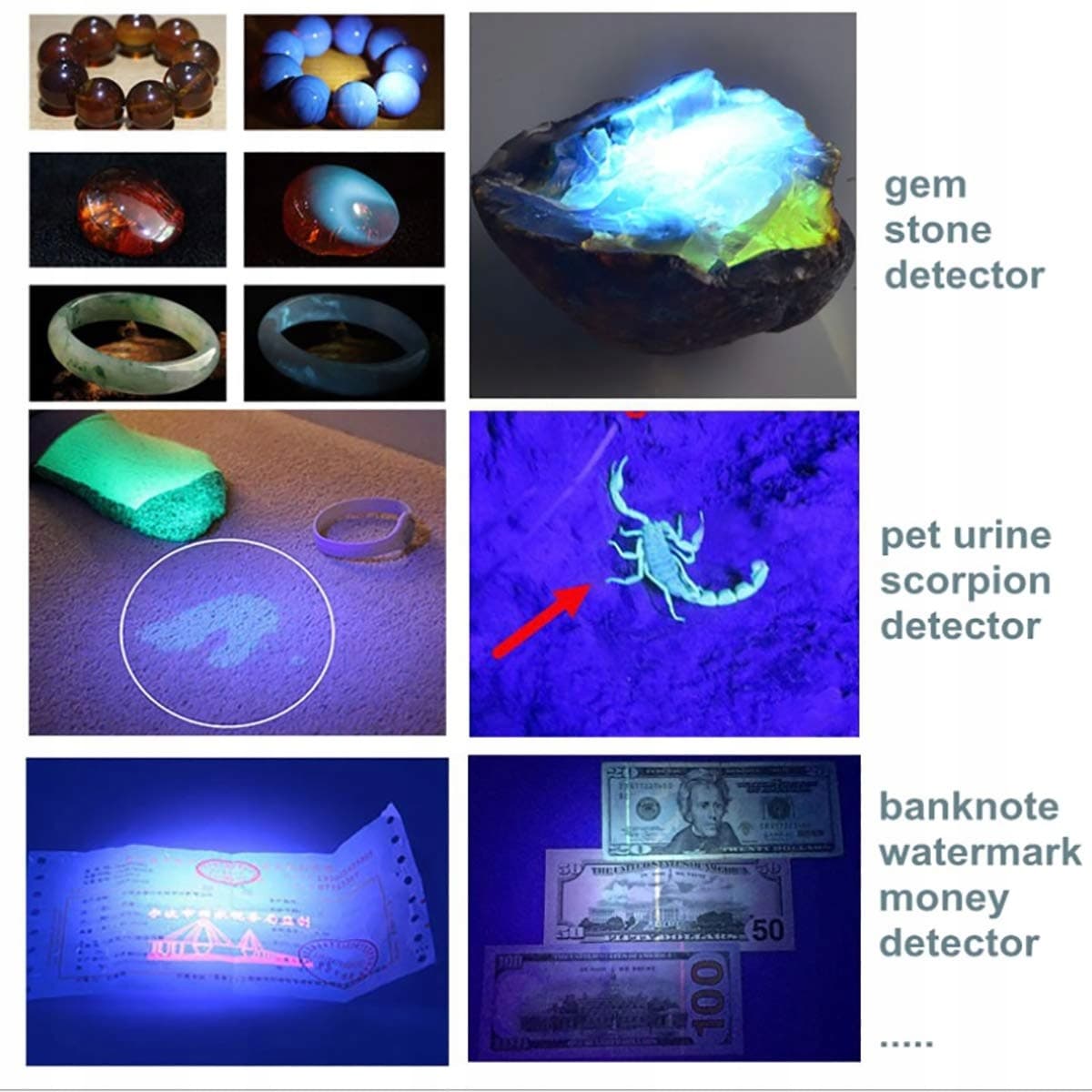 【395nm czarne światło】 Latarka UV wykorzystuje diodę LED 395nm, specjalnie zaprojektowaną jako profesjonalna latarka detekcyjna, również świetna do wykrywania moczu zwierząt, fluorescencji lub innych codziennych zastosowań.