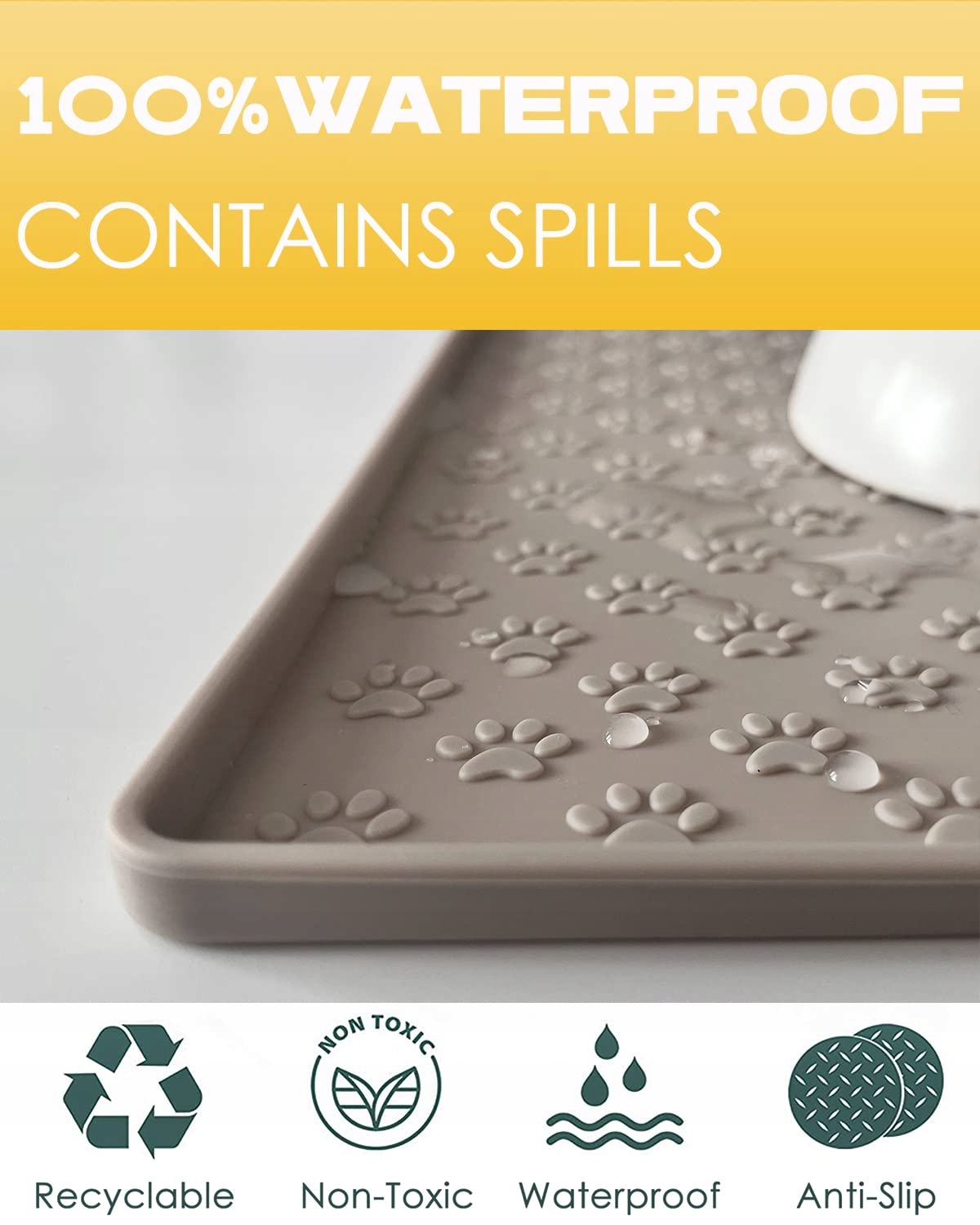 🐶🐱 SILIKON W JAKOŚCI SPOŻYWCZEJ & BEZPIECZNY DLA ZWIERZĄT - Mata na miski dla zwierząt wykonana jest z silikonu w jakości spożywczej, jest w 100% wolna od BPA i nietoksyczna. Zapobiega spożywaniu przez zwierzę jedzenia, które zanieczyściło podłogę. Przyjazny dla zwierząt design dla zdrowego i wygodnego karmienia!
