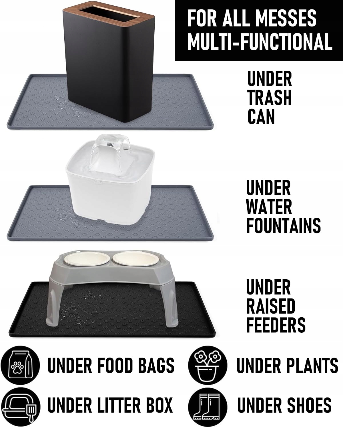🐶🐱PERFEKCYJNY ROZMIAR & WIELOFUNKCYJNA - Rozmiar maty na jedzenie dla zwierząt to 60 x 40 cm (24" x 16"), co zapewnia twoim zwierzętom dużo miejsca do jedzenia. Idealna do umieszczenia pod fontanną dla zwierząt/torbami z karmą dla zwierząt/nad podwyższonym korytem na jedzenie/do przechowywania w kuchni lub łazience/butów/kaloszy/roślin.
