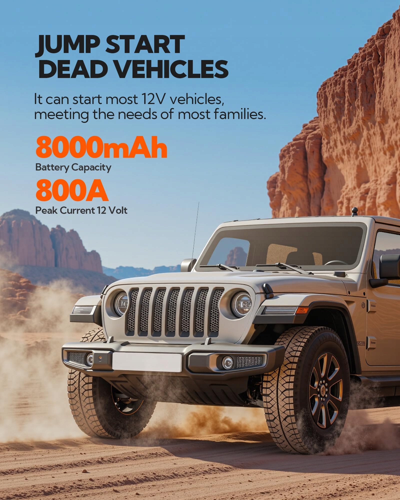 Zestaw awaryjny dla pojazdów: Rozrusznik akumulatora samochodowego Spark JC8 to Twoje natychmiastowe ratunek na drodze i idealne rozwiązanie na wszystkie Twoje awaryjne potrzeby związane z akumulatorem. Niezależnie od tego, czy Twój akumulator jest rozładowany, czy opona jest spłaszczona, zawsze jest świetnym towarzyszem podróży. Może łatwo obsłużyć większość samochodów, SUV-ów i pickupów, nadaje się do silników benzynowych o pojemności do 5,5 litra i silników Diesla o pojemności do 2,5 litra, co spełnia potrzeby większości rodzin.