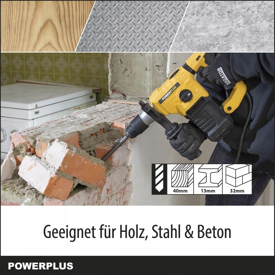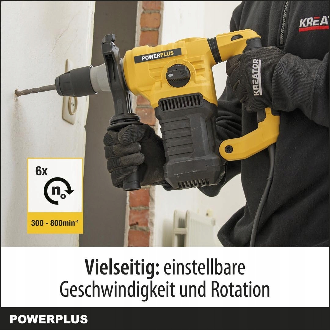 4 W 1: (UDAROWE) WIERCENIE, DŁUTOWANIE, OBRÓT DŁUTA - Ten młot udarowy z uchwytem SDS-Plus jest idealny do (udarowego) wiercenia i lekkich prac wyburzeniowych z funkcją dłutowania. Dłuto można obracać, co umożliwia wygodną pracę.