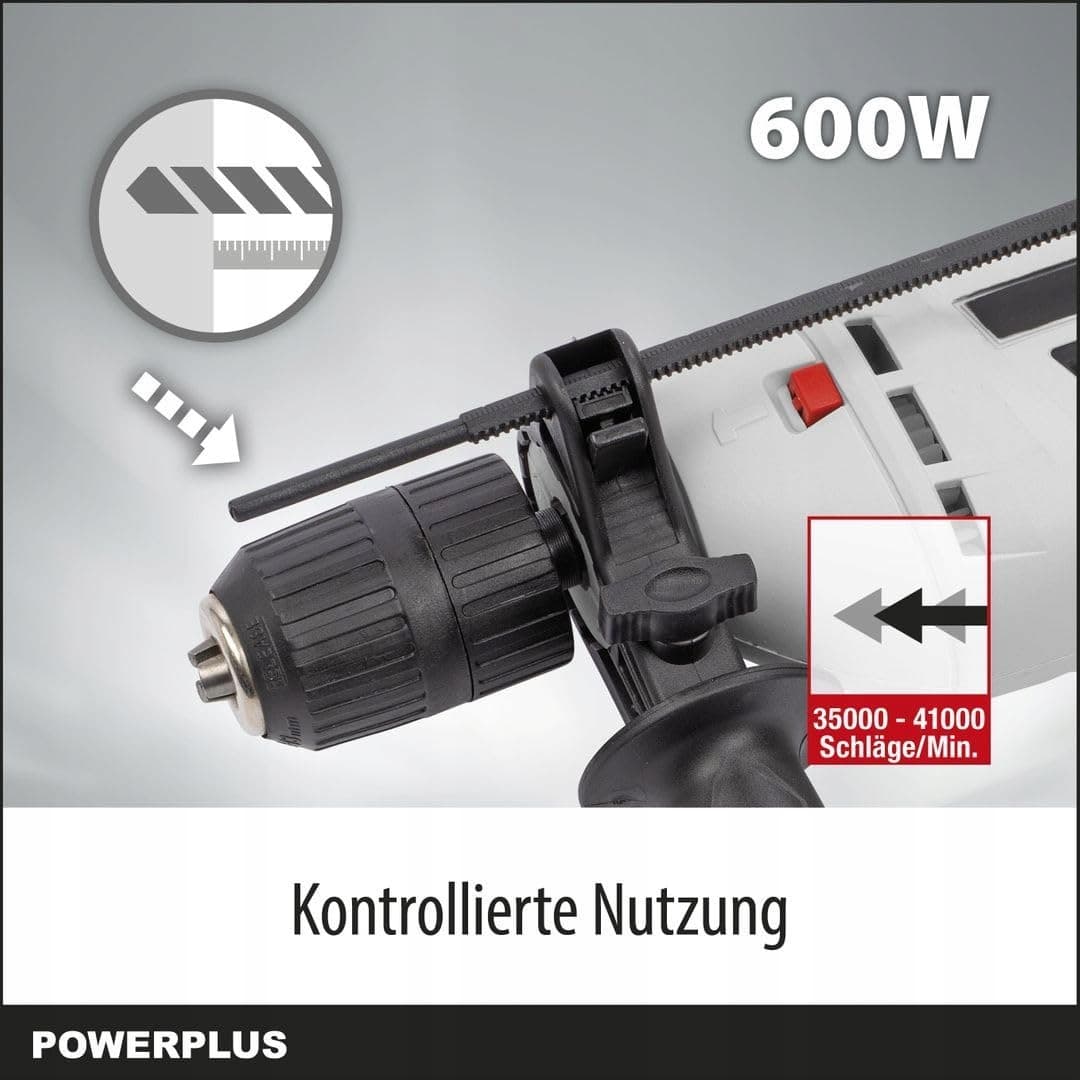 POWER plus Powerplus Wiertarka udarowa elektryczna POWC10200-2 w 1: (Udarowe) Wiercenie, 600 W Wiertarka, Przełącznik lewo-prawo do wkrętów