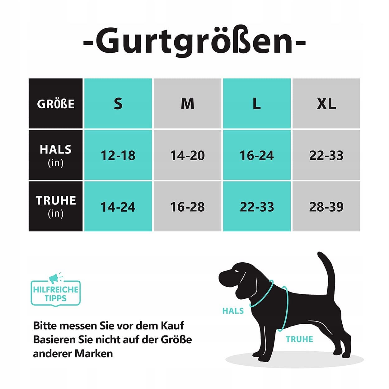 Całkowicie regulowane: 4-krotnie regulowane paski na szyi i klatce piersiowej dla indywidualnego dopasowania z dodatkowym miejscem na wzrost. Proszę zmierzyć psa, aby określić odpowiedni rozmiar przed zakupem.