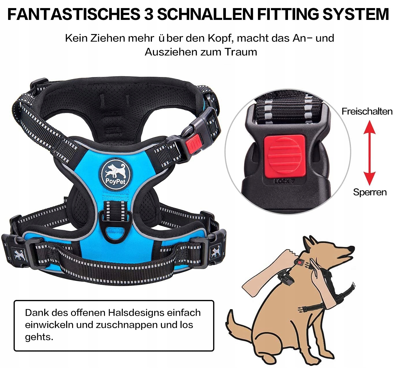 POYPET Szelki Dla Psów Bez Ciągnięcia Refleksyjne Niebieskie L
