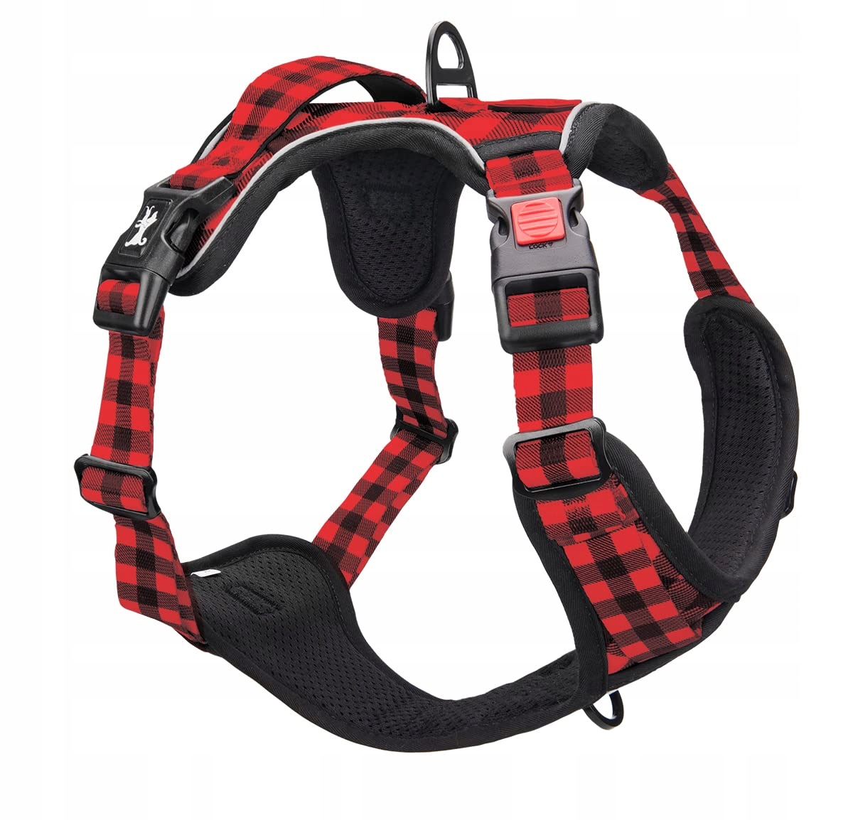 PoyPet Keine Pull Hundegeschirr Front Reflektierende Pet Weste für Hunde mit Einfache Kontrolle Griff und Rückseite perfekt für den täglichen Training, Walken, Running(Kariertes Rot,M)