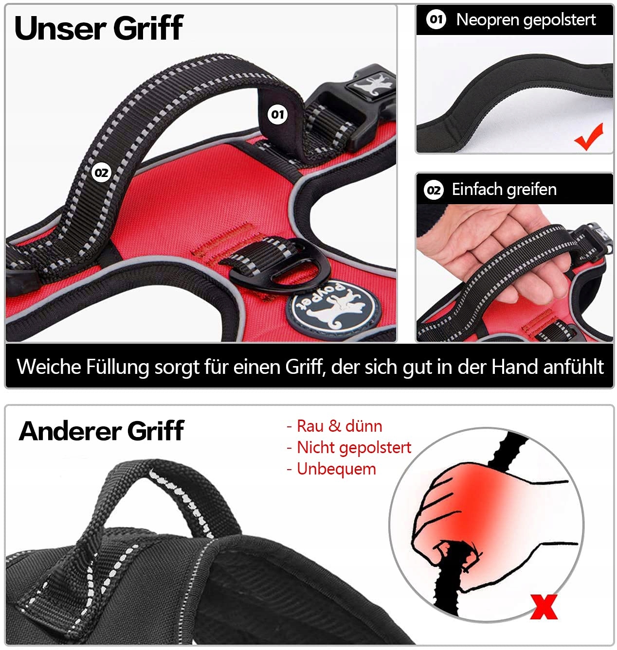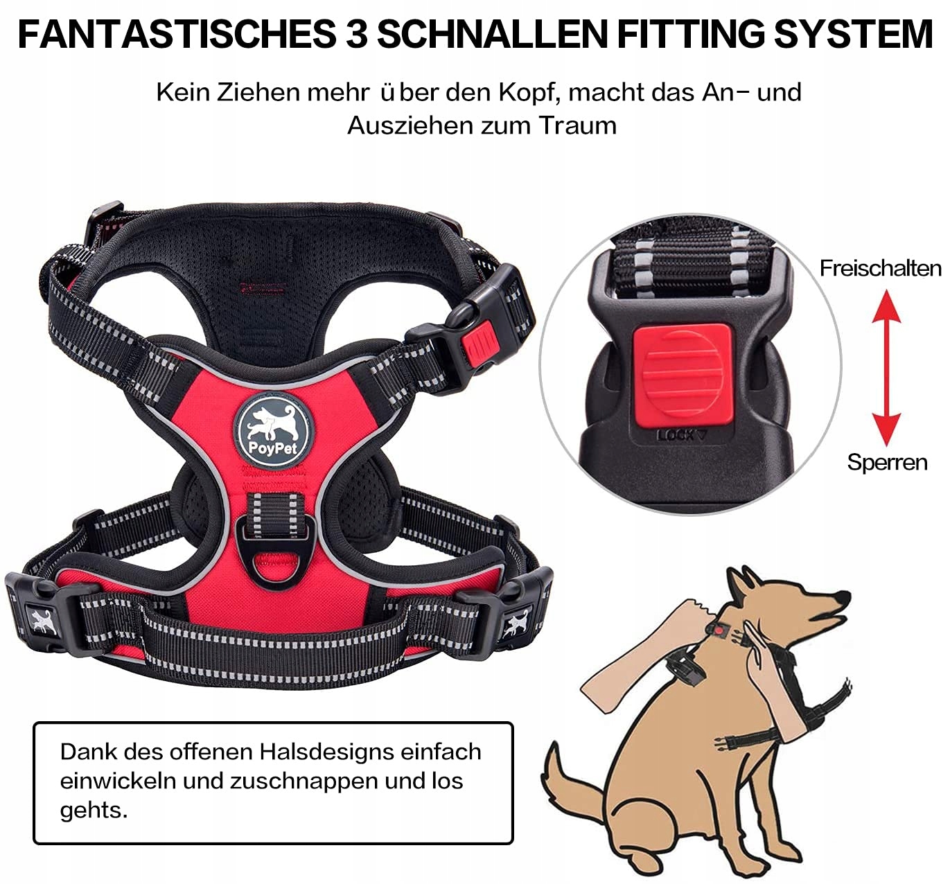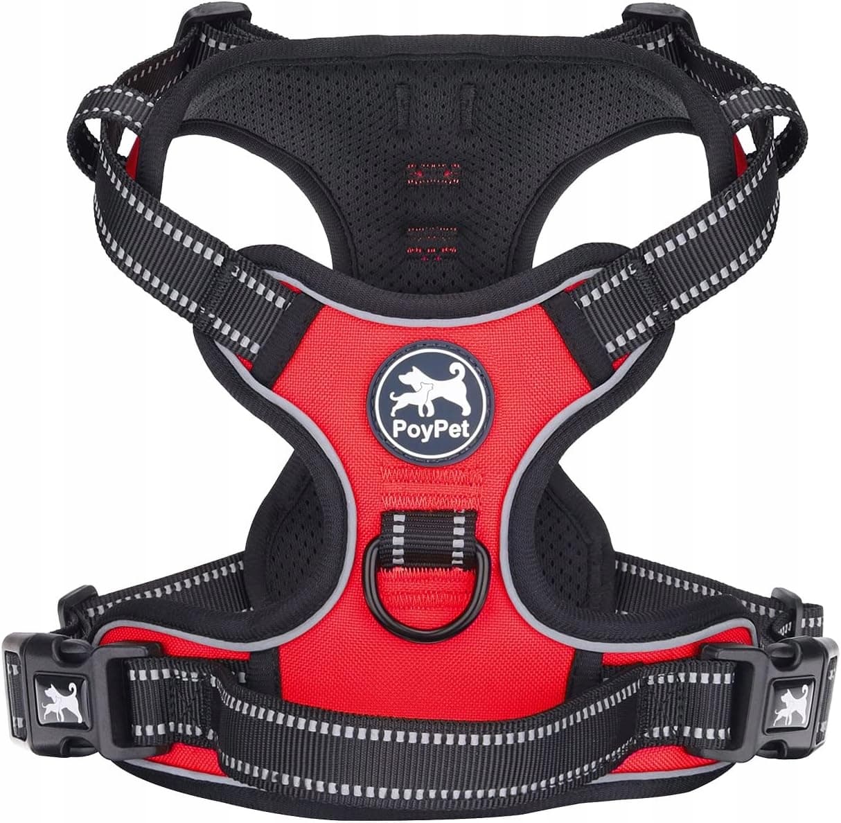 POYPET Szelki Dla Psów Bez Ciągnięcia Refleksyjne Z Uchwytami Czerwone S