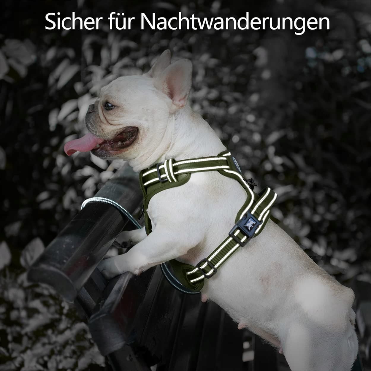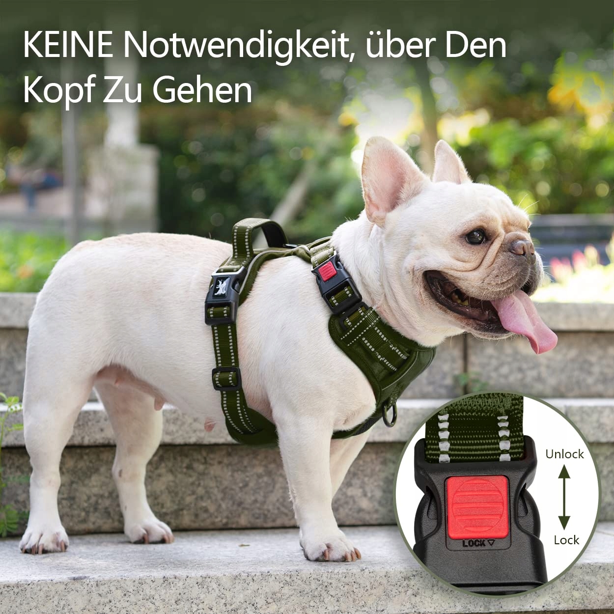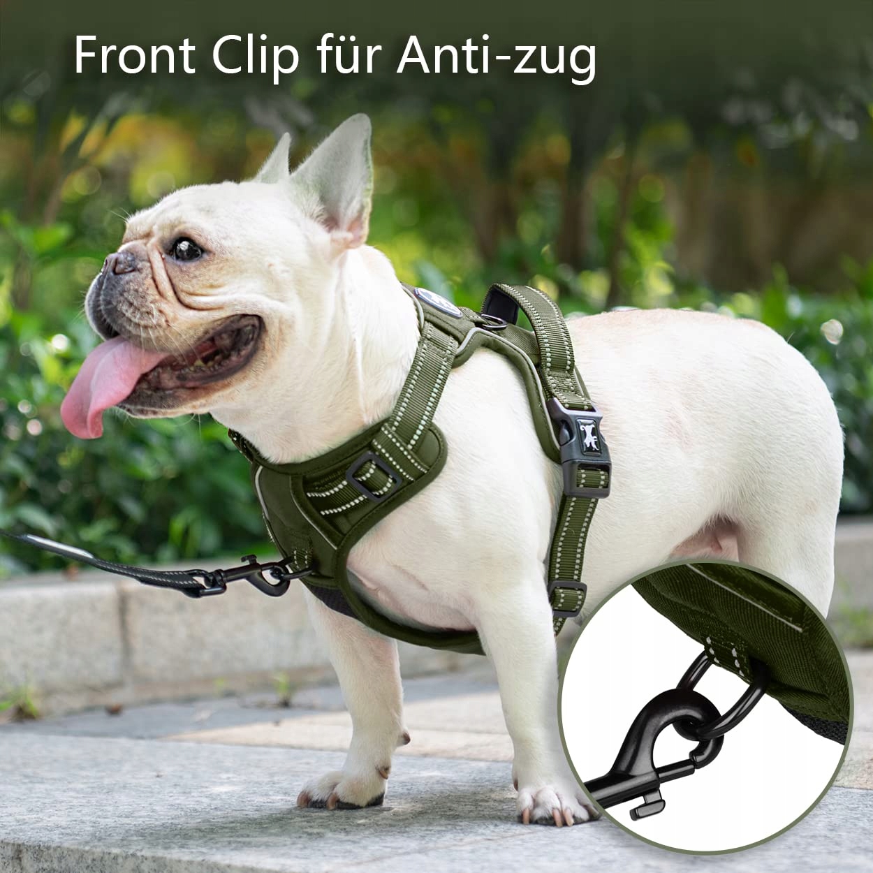 PoyPet szelki dla psa bez ciągnięcia, odblaskowe szelki dla psa bez duszenia, regulowana, miękko wyściełana kamizelka dla zwierząt z łatwym uchwytem do kontroli dla małych do dużych psów (zielony wojskowy, XS)