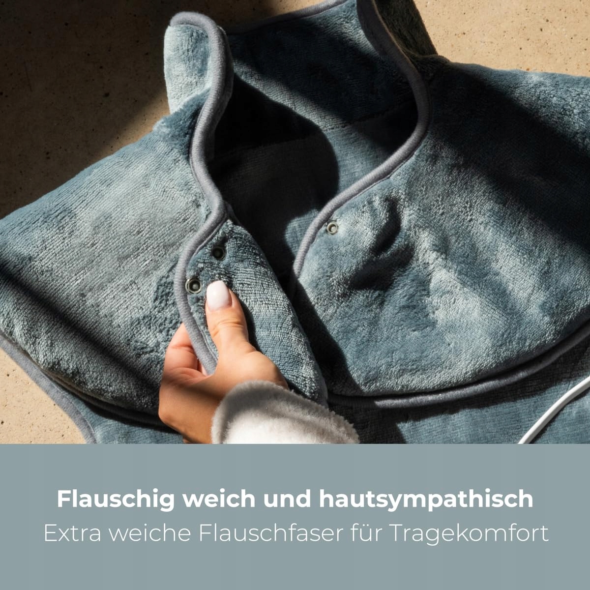 Dzięki optymalnemu dopasowaniu i bezpiecznemu trzymaniu, poduszka grzewcza na ramiona i szyję pozostaje na miejscu, podczas gdy się relaksujesz