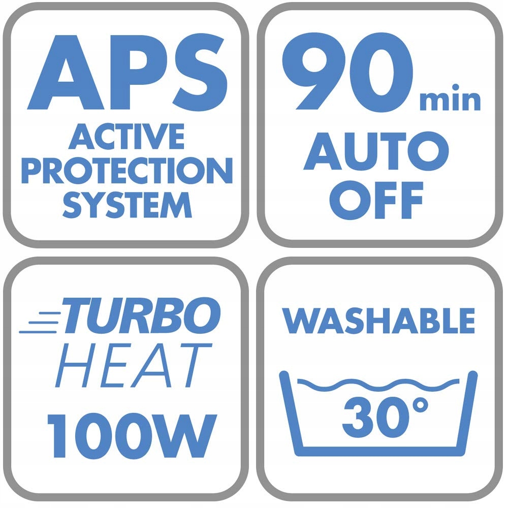 Automatyczne wyłączenie po 90 minutach. System bezpieczeństwa z ochroną przed przegrzaniem
