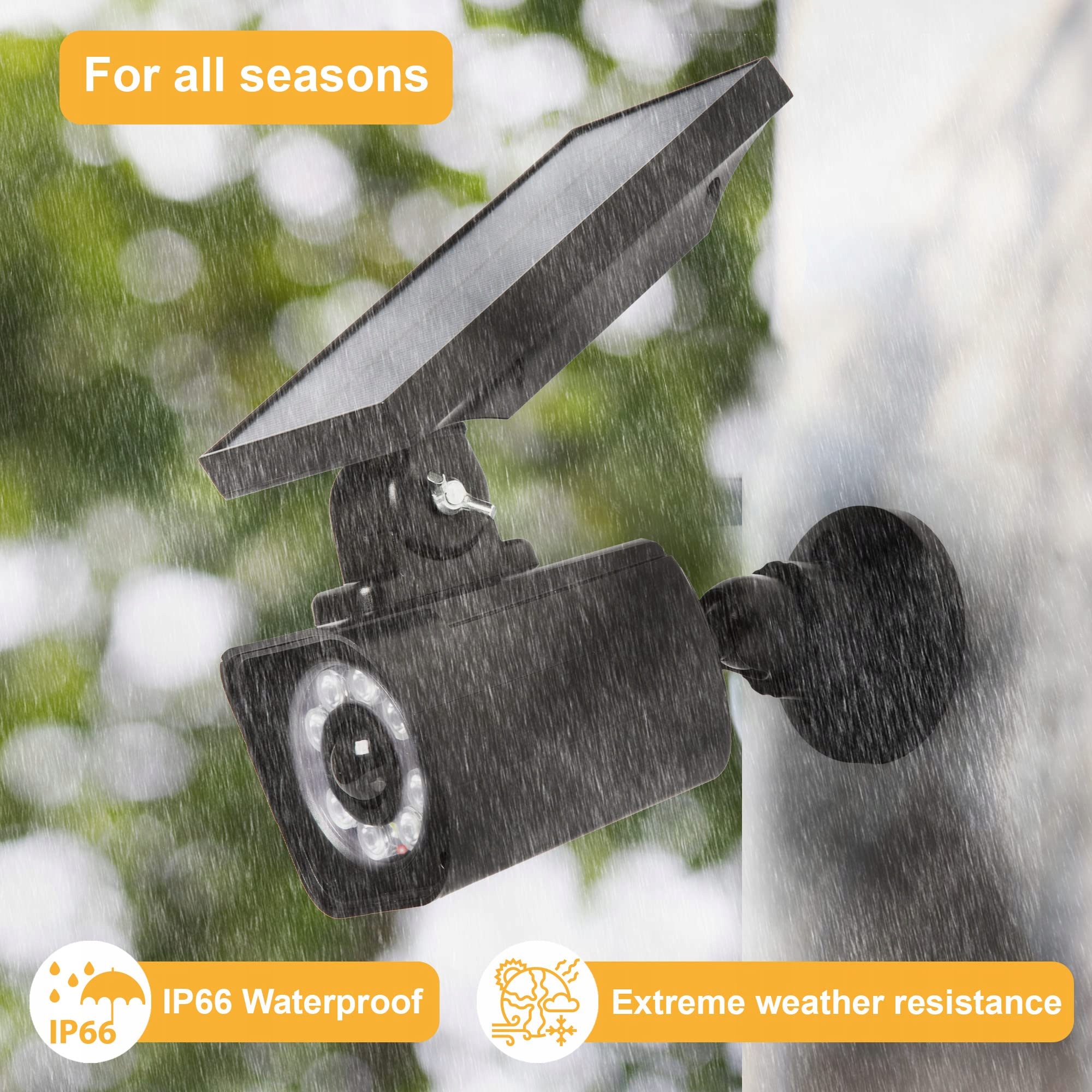 NA KAŻDĄ POGODĘ: Każdy tryb czujnika został przetestowany, aby zapewnić bezproblemową technologię czujnika ruchu PIR na zewnątrz. Dzięki długiemu czasowi pracy baterii nie musisz się obawiać przerw w dostawie prądu