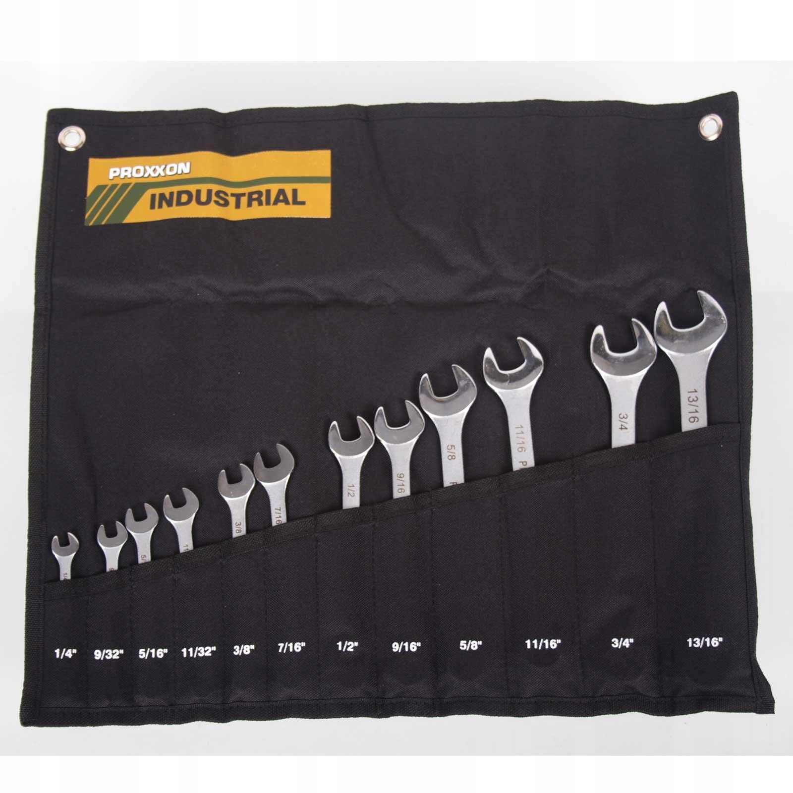 PROXXON 23816 Zestaw kluczy płaskich i oczkowych do śrub / nakrętek calowych - narzędzie najwyższej jakości: 2 x niklowane, 1 x chromowane z laserowym oznaczeniem