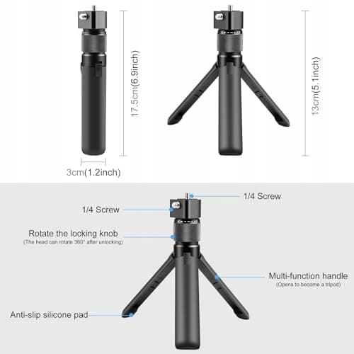 【Uchwyt obracany o 360 stopni】Uchwyt może obracać się o 360 stopni i ma na górze śrubę 1/4 cala, dzięki czemu może być również używany jako statyw stołowy.