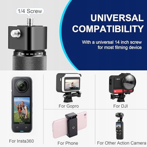 【Kompatybilne urządzenia】Mini statyw jest kompatybilny z Insta360 Ace, Ace Pro, ONE RS 1-INCH EDITION, ONE RS 360 Edition, ONE RS 4K Edition, ONE RS 1-Inch 360 Edition, ONE X2, X3, X4, X5, Gopro NEW HERO, HERO7 Silver, HERO11 Black, HERO10 Black, Hero Session, HERO (2024), HERO, MAX, HERO8 Black, HERO7 White, HERO7 Black, HERO6 Black, HERO5 Session, HERO5 Black, HERO4 Session, HERO4, HERO3, HERO2, HERO13 Black, HERO12 Black, HERO11 Black Mini, HERO9 Black, HERO3+, dla DJI Osmo Action 3, Action 2, Osmo Action, Osmo Action 4, Osmo Action 5 Pro, Osmo 360