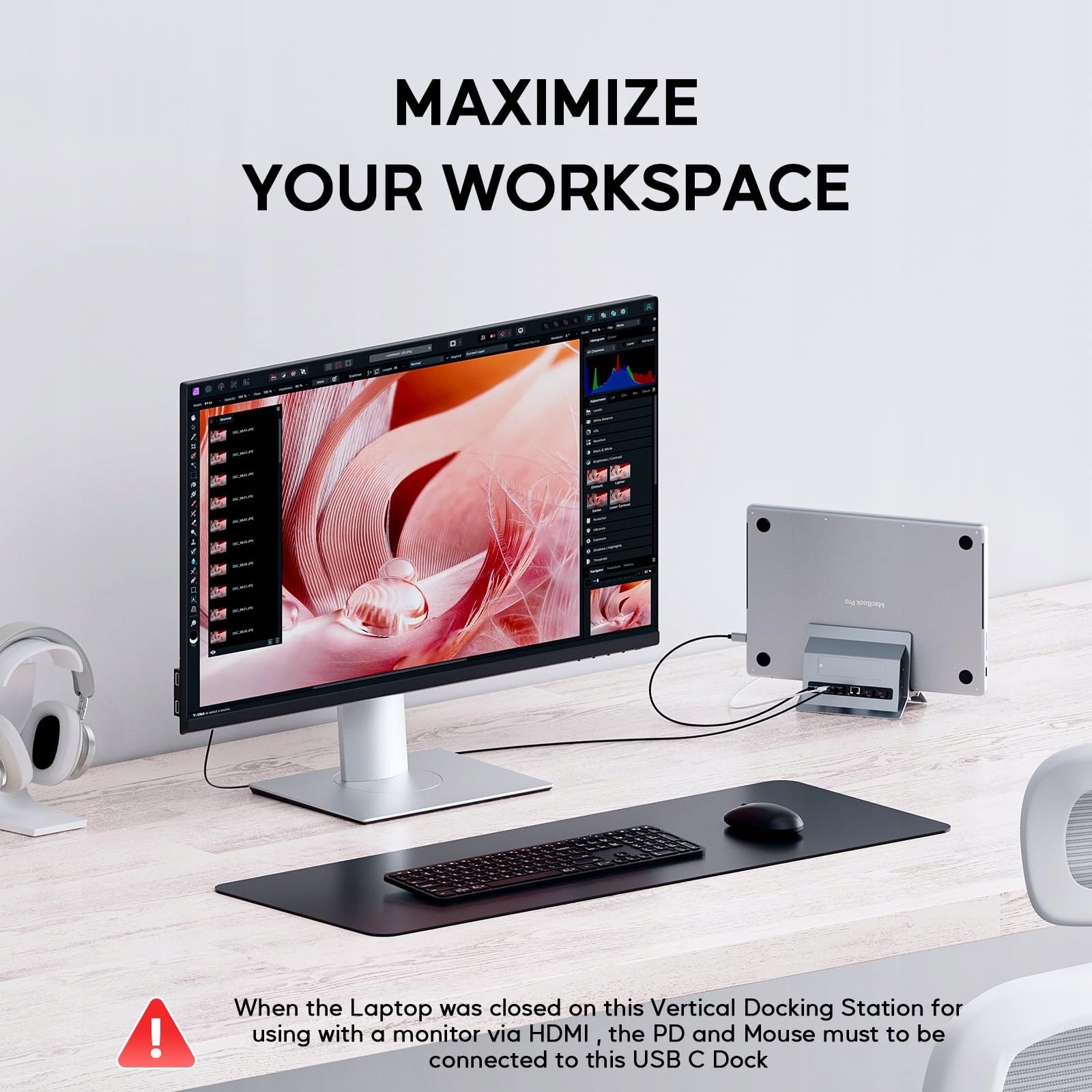 【ALL-in-One Prosty design】 Automatyczny stojak na laptopa może utrzymać Twój MacBook i laptop w pozycji pionowej, poprawiona cyrkulacja powietrza i odprowadzanie ciepła zapobiegają przegrzewaniu i wydłużają żywotność laptopa, idealne akcesorium biurowe do używania na biurku, gdy Twój laptop jest podłączony do monitora oraz klawiatury lub myszy