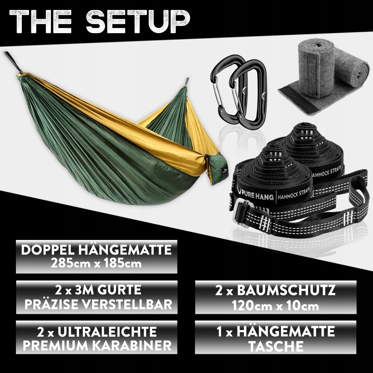 PURE HANG Premium Hamak Campingowy 2 Osoby Nylon 300kg Zielony