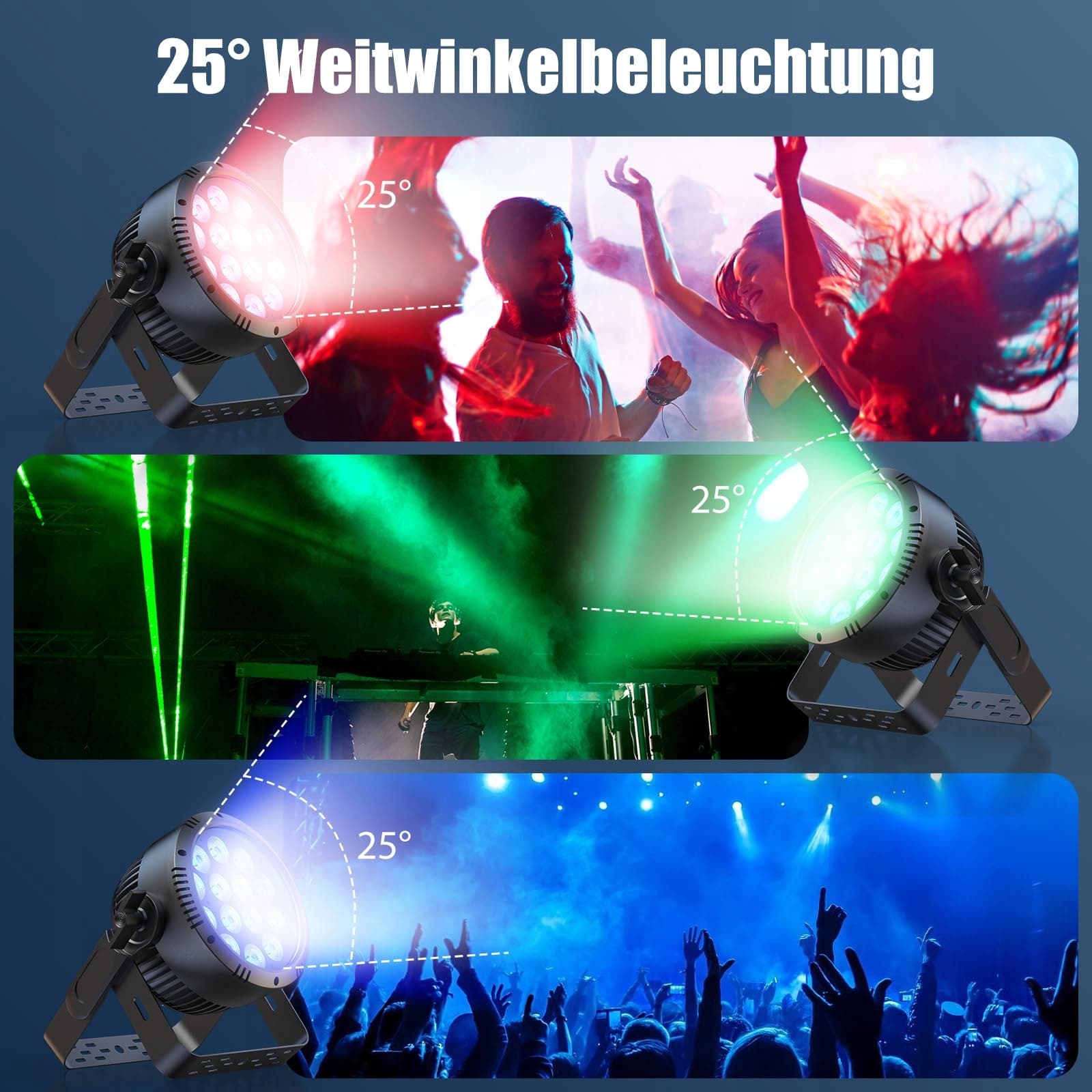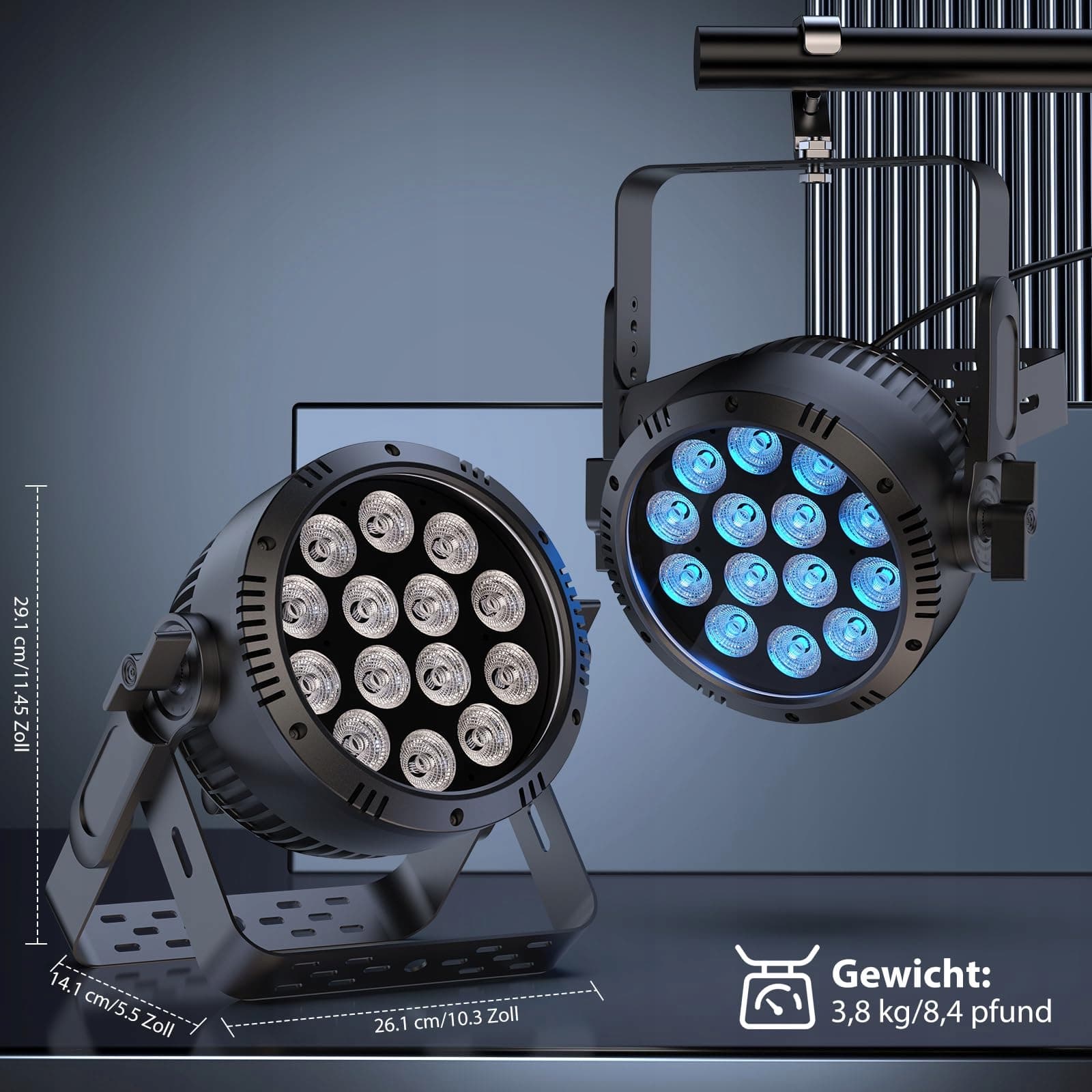RGBW 14×15W LED Par Reflektor: 200W LED Par z RGBW (czerwone, zielone, niebieskie i białe) 4-w-1 LED wysokiej jakości 3200K–8000K temperatura barwowa i precyzyjne odwzorowanie kolorów dzięki Ra≥80 dla naturalnego odwzorowania kolorów