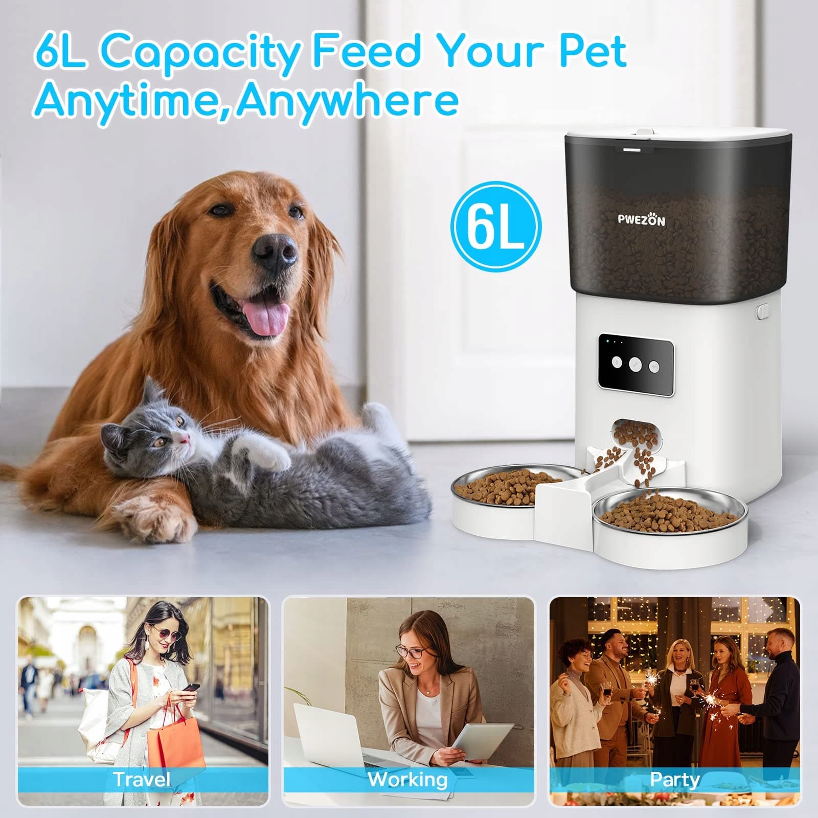 PWEZON Inteligentny WiFi Podwójny Karmnik 6L dla Kotów i Psów z App Timerem