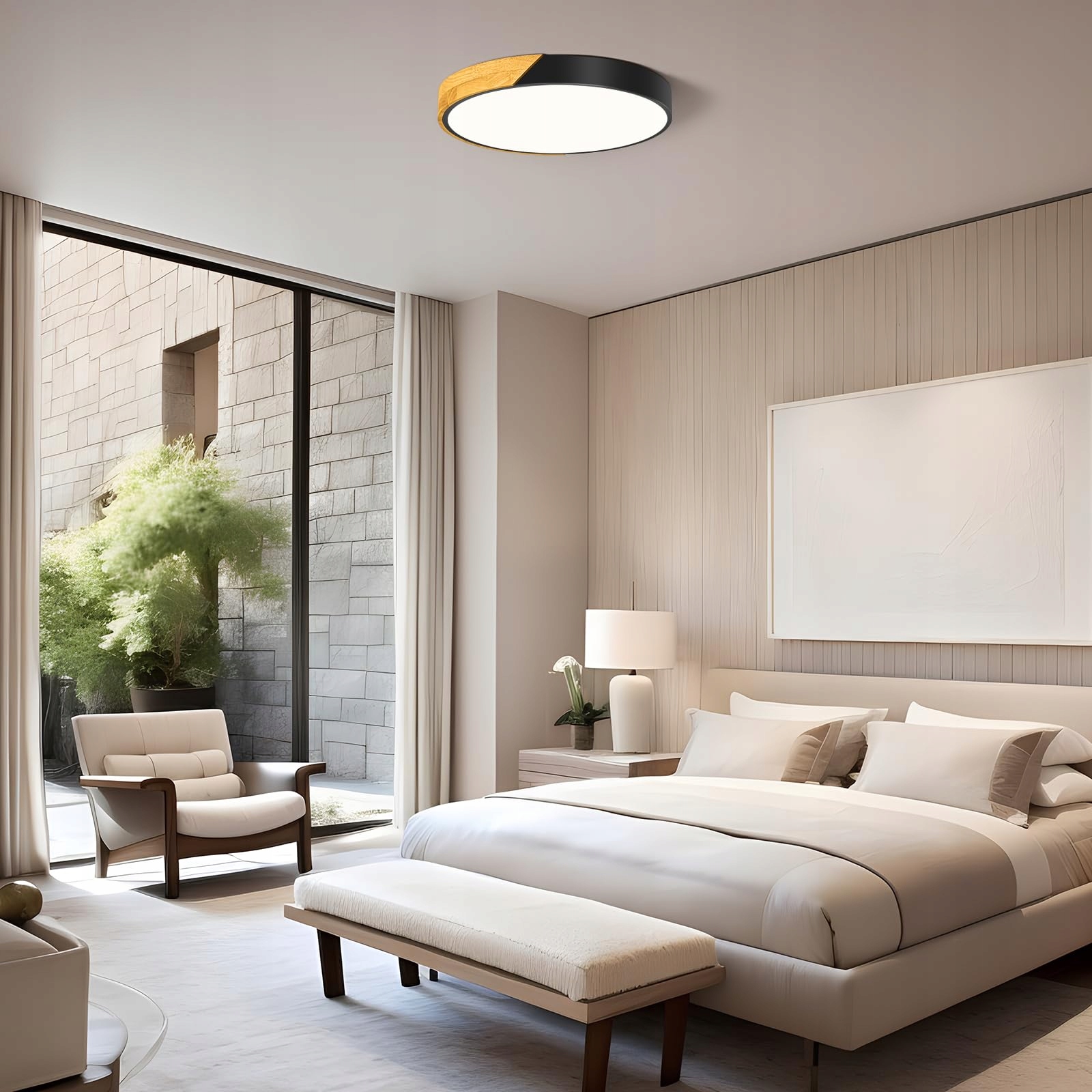 Qamra LED Lampa sufitowa, Lampa sufitowa czarna 40cm, Lampa drewniana 36W, Lampa okrągła do salonu, sypialni, kuchni, korytarza, jadalni 4000K