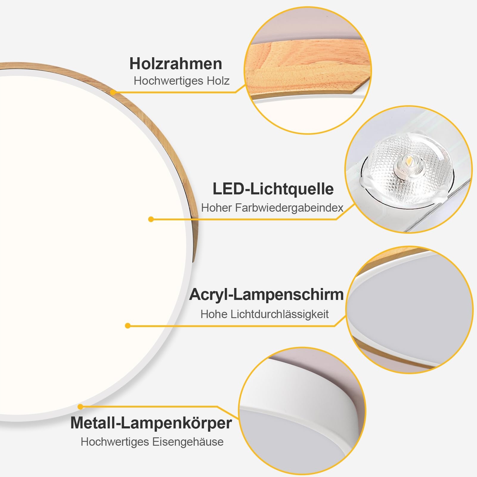 Rozmiar i materiał: Nowoczesna lampa sufitowa LED 4000K ma średnicę 30 cm. Wysokość wynosi 4 cm. Wykonana jest z metalu, drewna i akrylu i jest solidna. Niekompatybilna z ściemniaczem