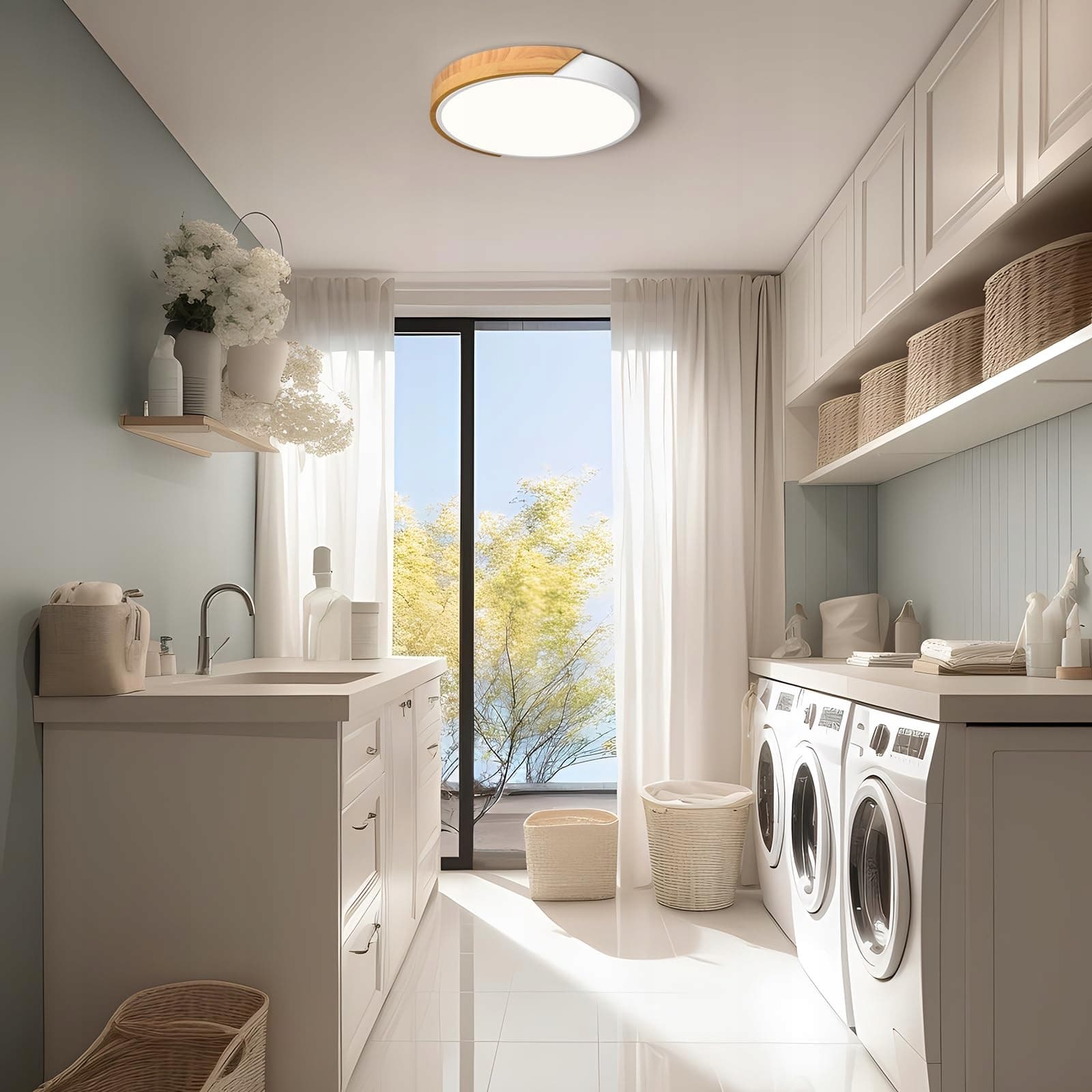 QAMRA LED Ceiling Lamp 30cm White Wood 4000K | Premium Supply