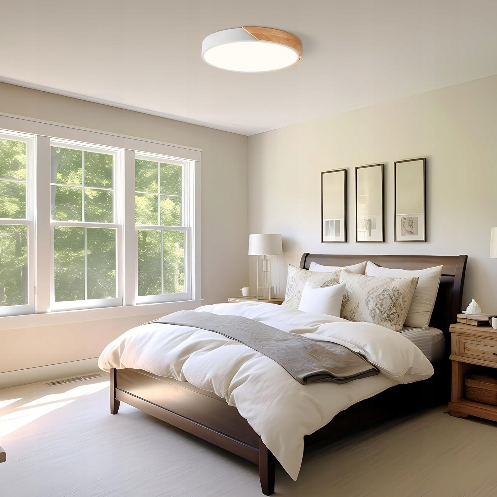 Lampa sufitowa Qamra, lampa sufitowa LED 30 cm, lampa do salonu biała, nowoczesna lampa drewniana do salonu sypialni kuchni korytarza 4000K