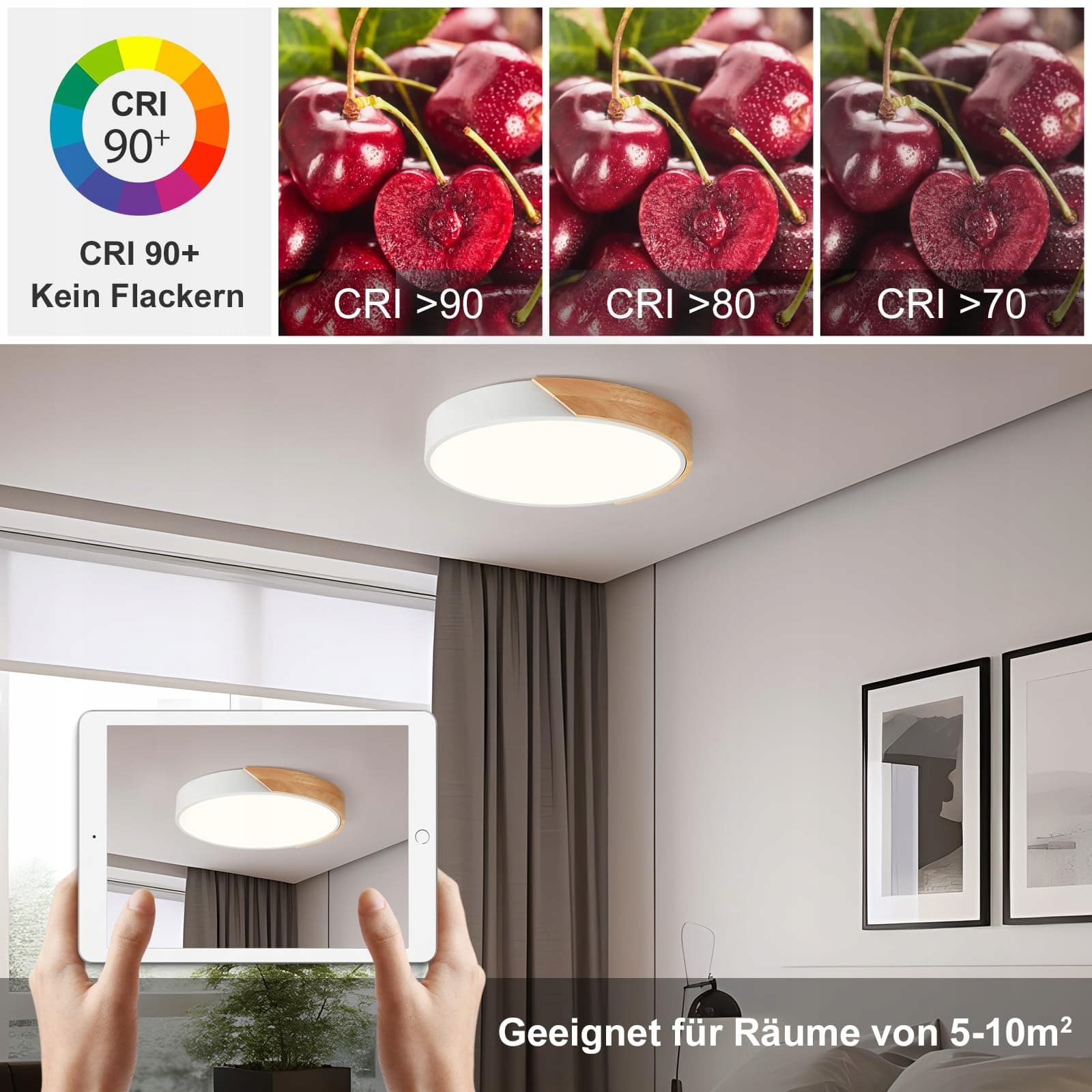Neutralna biała barwa światła: Temperatura barwowa lampy sufitowej wynosząca 4000K jest najbliższa białemu światłu dziennemu i zapewnia jasne i wyraźne oświetlenie. Oferuje również wysoką reprodukcję kolorów, dzięki czemu obiekty pojawiają się w ich naturalnych kolorach