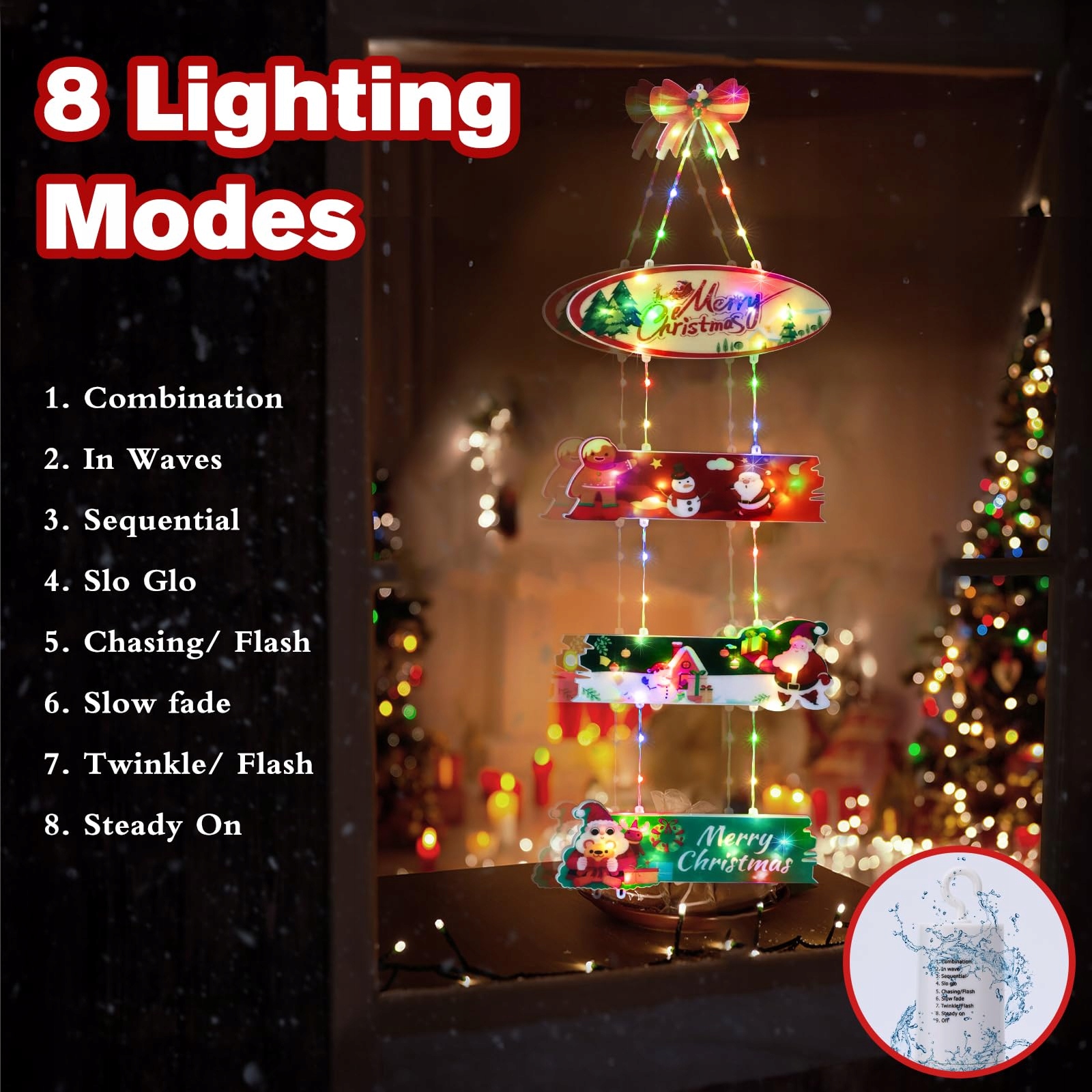 8 Trybów Oświetlenia: Ozdoba świąteczna w kształcie wianka ma 8 trybów oświetlenia (7 rodzajów trybów migania i tryb stałego światła) do wyboru. Funkcja pamięci: chip pamięci zapisuje Twoje ostatnie ustawienie trybu, więc nie musisz codziennie resetować trybu.