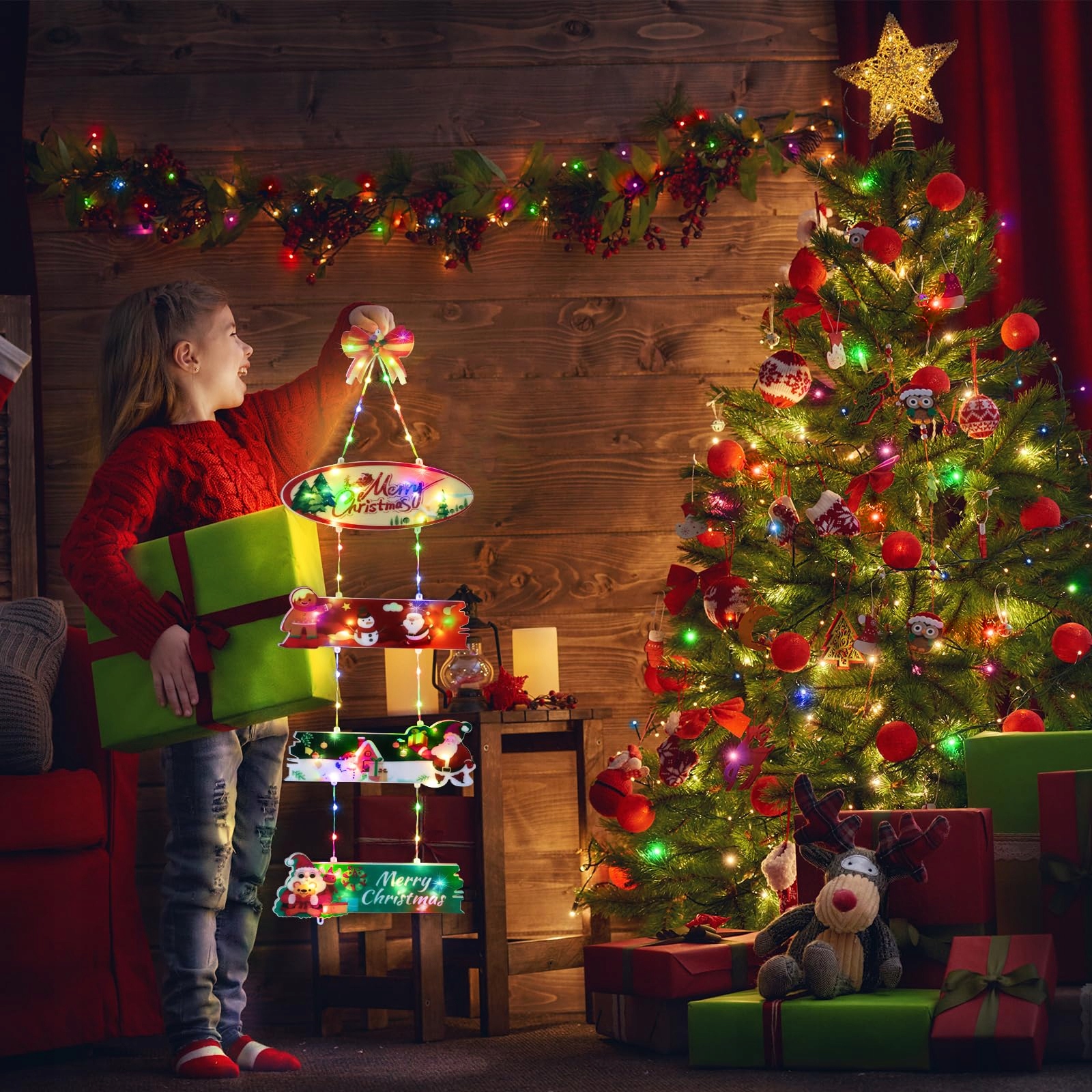 Oświetlenie Świąteczne Zewnętrzne: Nowy wianek świąteczny z 2024 roku z 72 LED, kolorowe światło, możemy go łatwo umieścić na drzwiach, schodach, oknach, werandzie, sypialni, ogrodzie, tarasie, choince. To piękna dekoracja świąteczna dla Twojego domu, a także doskonały prezent świąteczny dla Twoich bliskich.