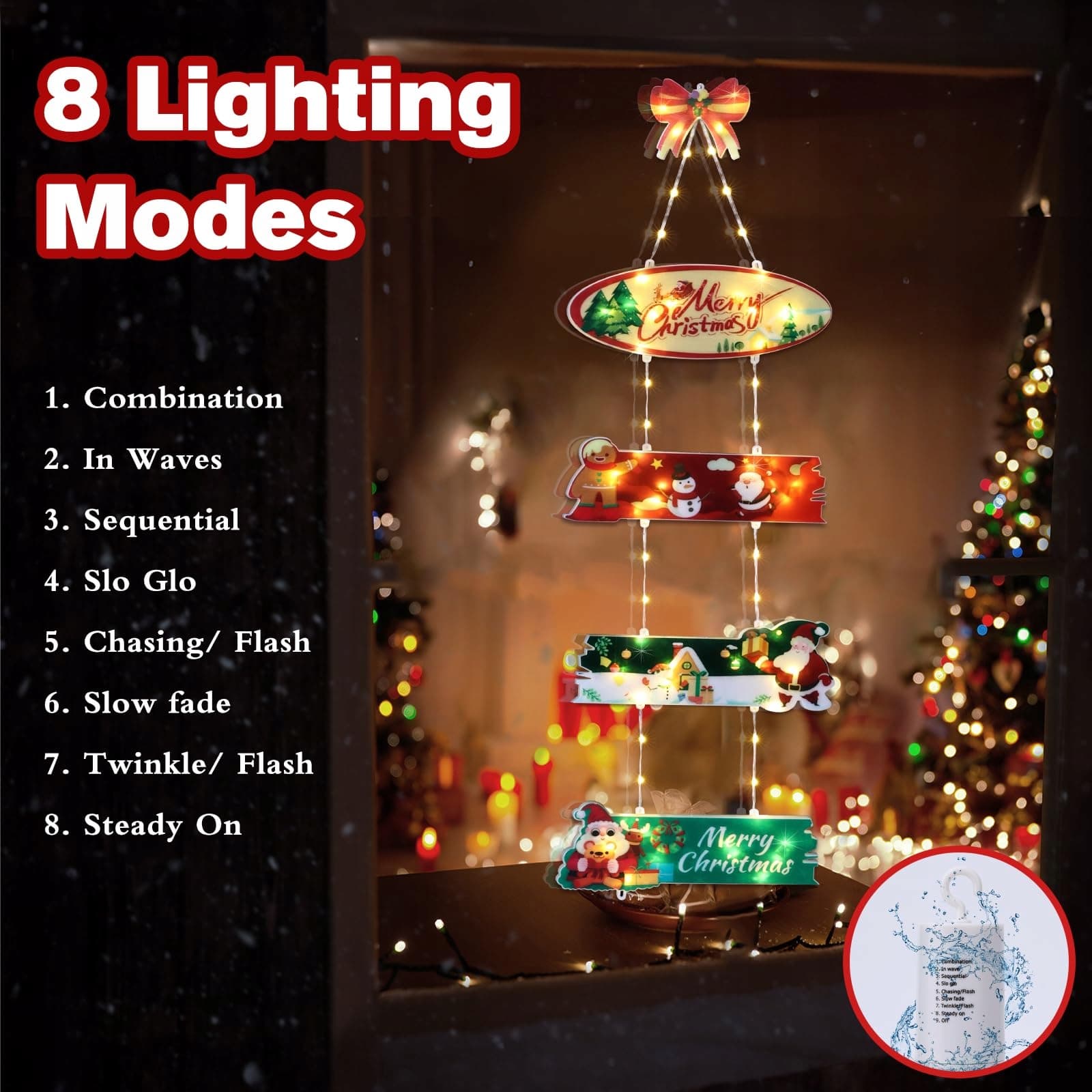 Qedertek Oświetlenie Świąteczne Zewnętrzne Baterie, 72 LED Wianek Świąteczny Ciepła Biała Z Timerem, 8 Trybów, Wodoodporne Oświetlenie Świąteczne do DIY Drzwi, Okna, Ściany, Domek dla Lalek Dekoracja Świąteczna