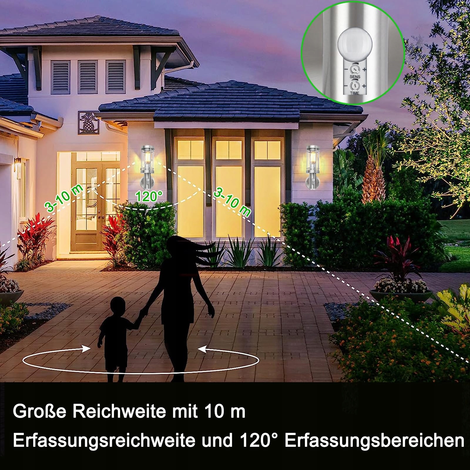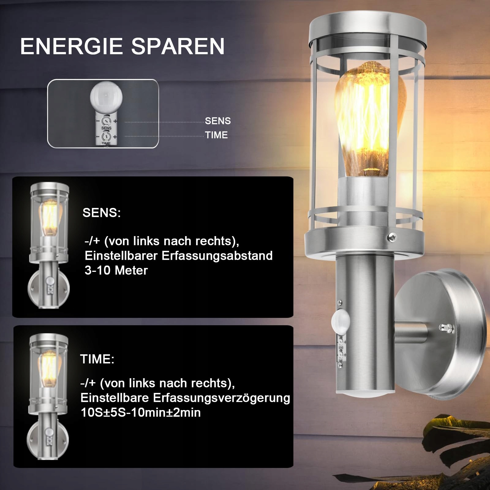 qfzwj Lampa zewnętrzna z czujnikiem ruchu - stal nierdzewna Lampa ścienna na zewnątrz, wodoodporna IP44, oprawka E27, nowoczesne oświetlenie ścienne do ogrodu, elewacji i drzwi wejściowych