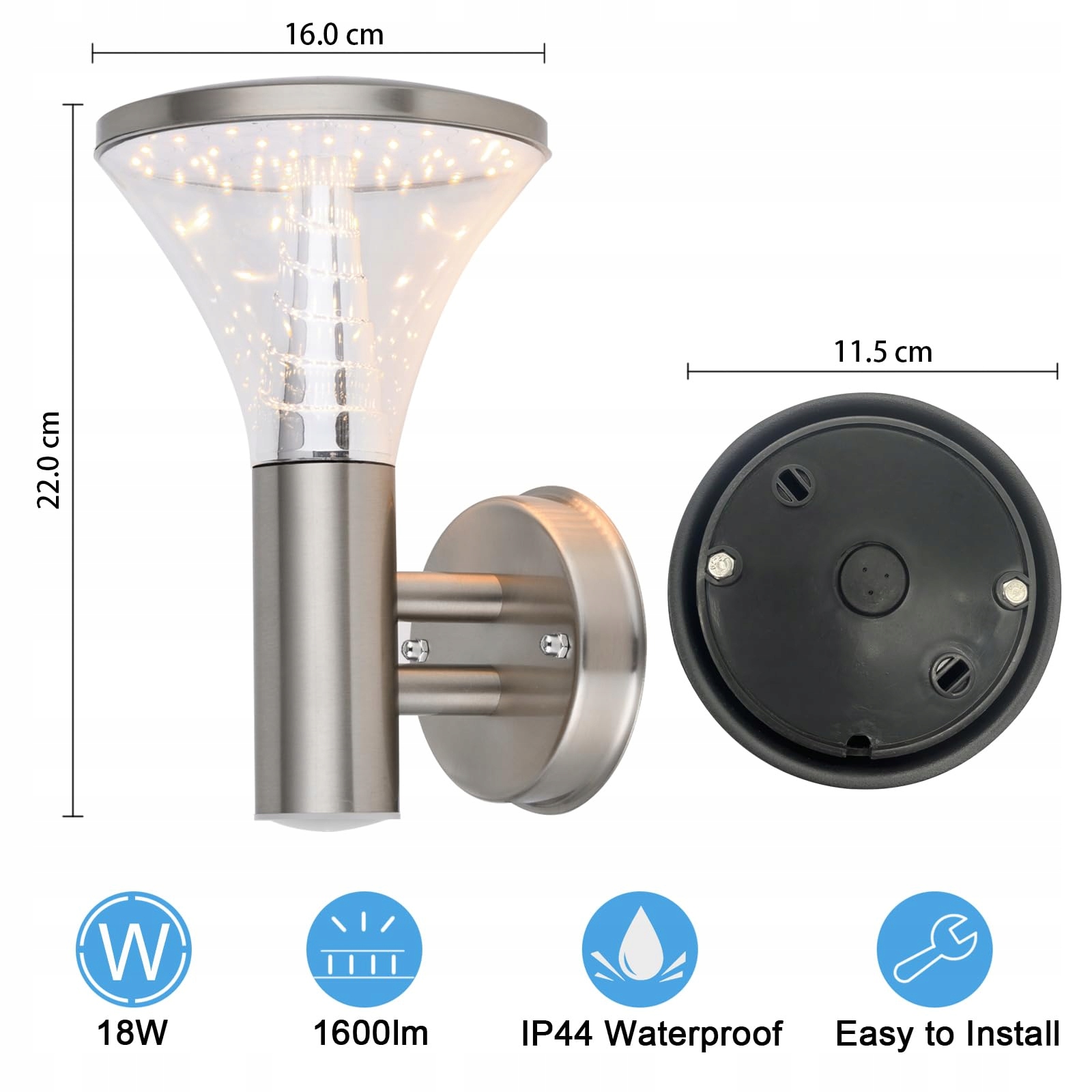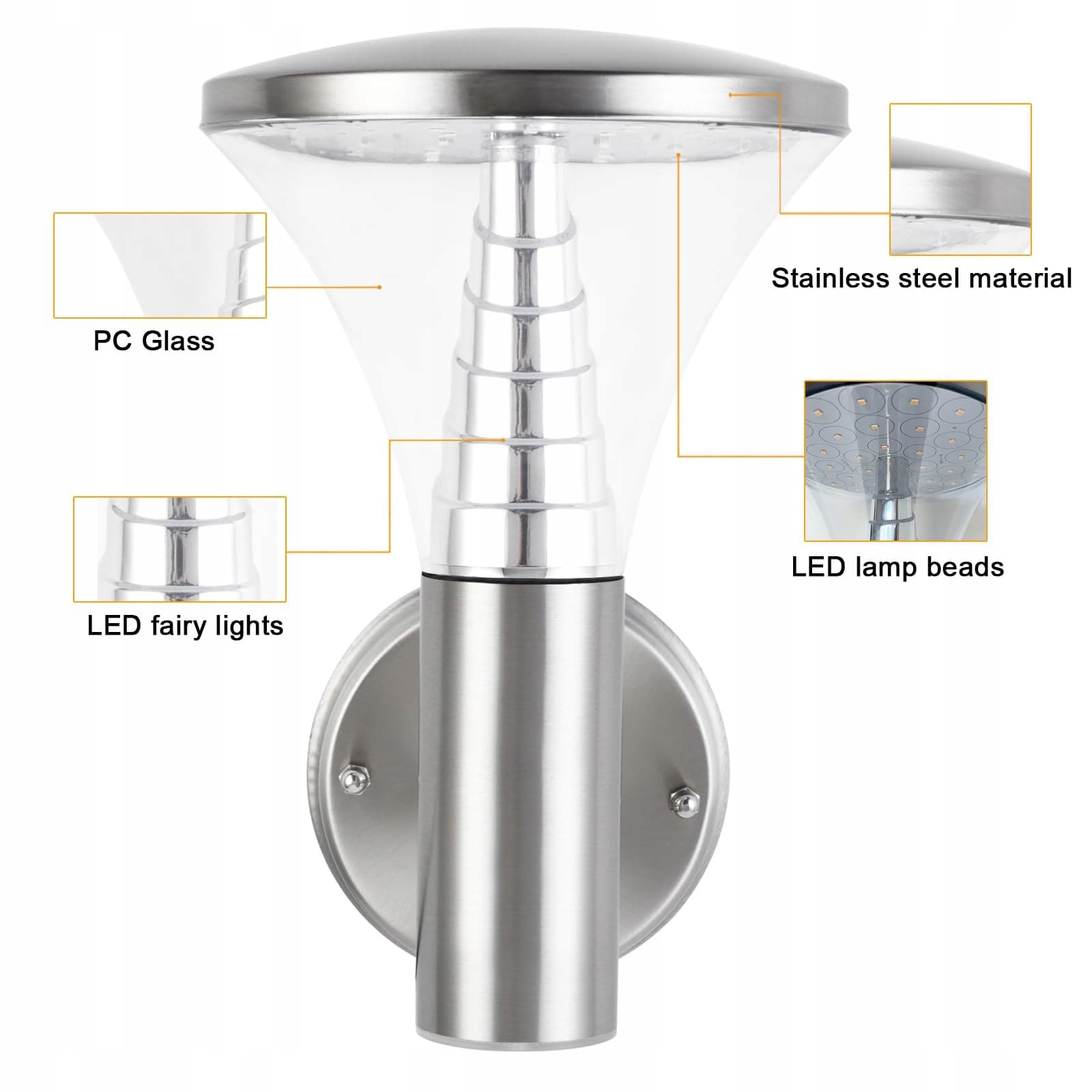 ✅【Wysokiej jakości stal nierdzewna】Nasze kinkiety zewnętrzne wykonane są w 100% ze stali nierdzewnej, nie rdzewieją i są bezszwowe, co skutecznie zapobiega rdzy i korozji. Przezroczysty klosz lampy wykonany jest z materiału PC, który jest odporny na wysokie temperatury i uderzenia oraz ma wysoką przepuszczalność światła.
